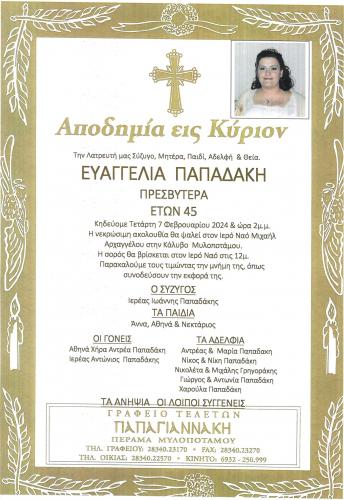 Μετά από μια άνιση μάχη η Ευαγγελία Παπαδάκη πέρασε στην αιωνιότητα συγκλονίζοντας τους πάντες με την πρόωρη απώλεια της.
