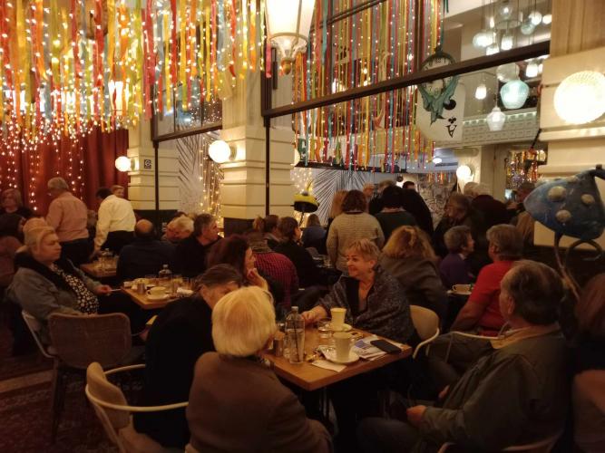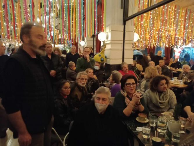 Στο κατάμεστο από κόσμο καφέ της πόλης, τα στελέχη του ΣΥΡΙΖΑ συζήτησαν και αντάλλαξαν απόψεις για το μέλλον τους κόμματος τους σε μια εκδήλωση που στόχο είχε να συμβάλει θετικά στην διαδικασία του προσυνεδριακού διαλόγου.