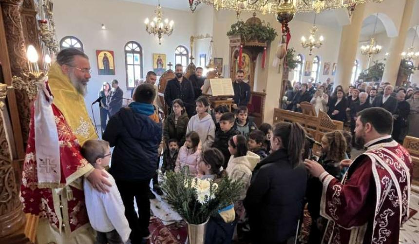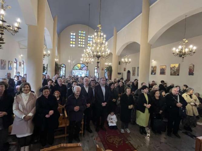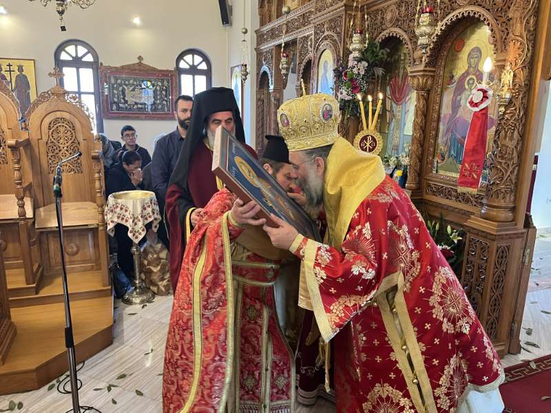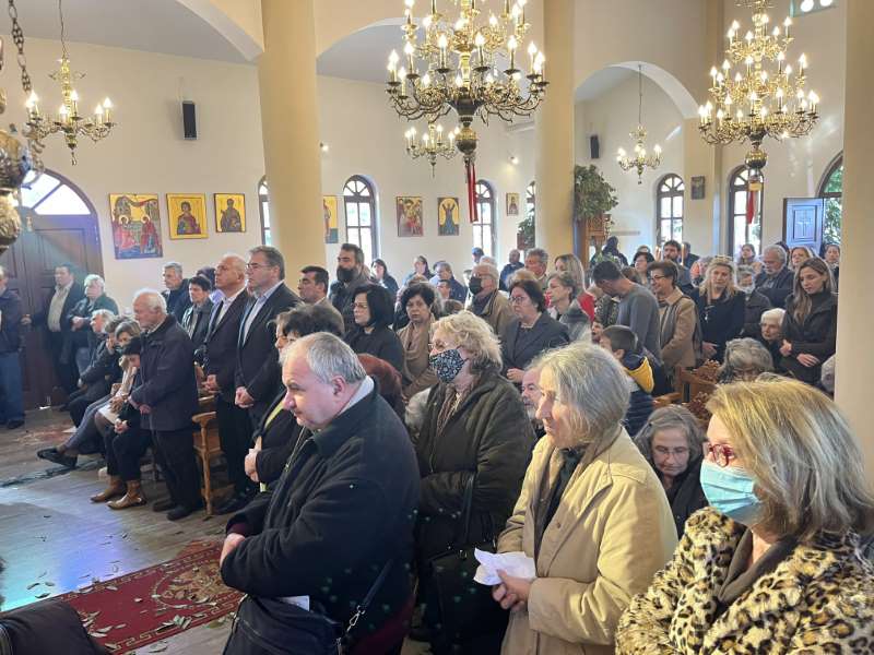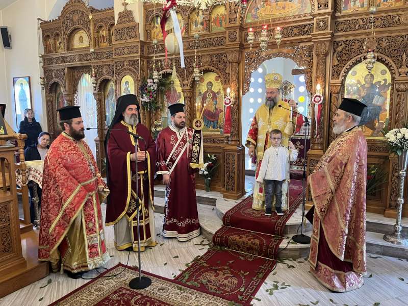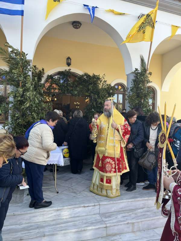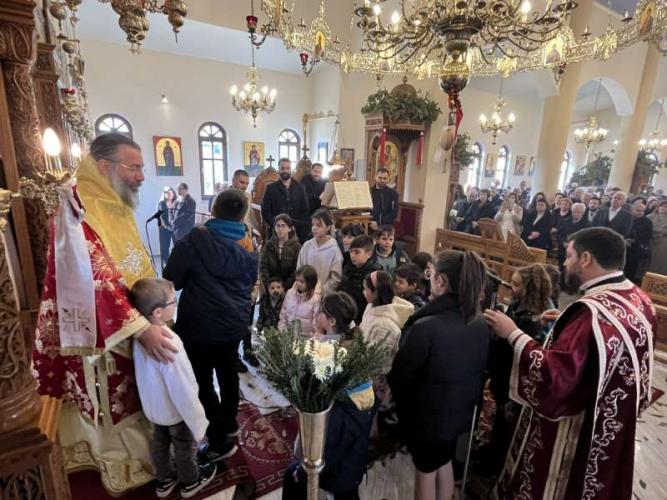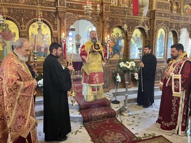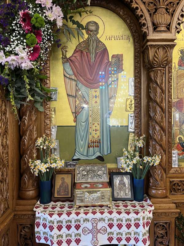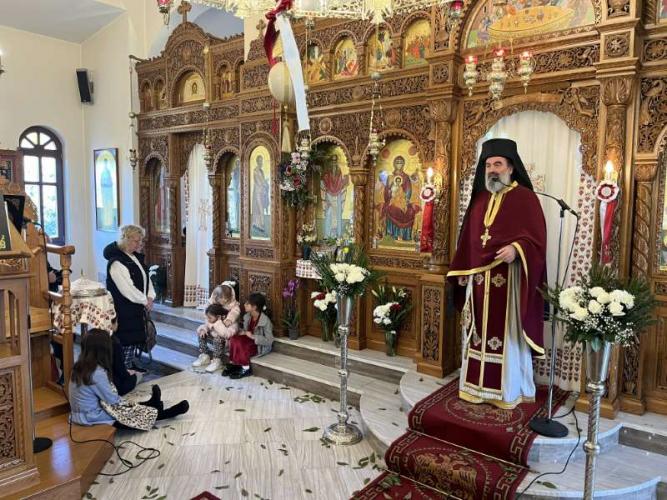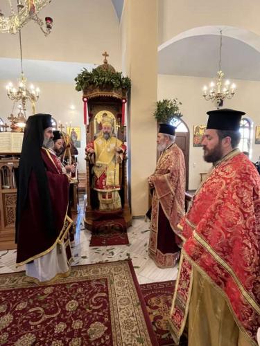 Προ της απολύσεως της Θείας Λειτουργίας, ο Εφημέριος της Ενορίας, Αιδεσ. Πρωτοπρεσβύτερος Νικόλαος Ζωλοτάκης, ευχαρίστησε τον Σεβασμιώτατο για την παρουσία του και του προσέφερε από πλευράς της Ενορίας περίτεχνη Ιερά Εικόνα του Αγίου Χαραλάμπους.
