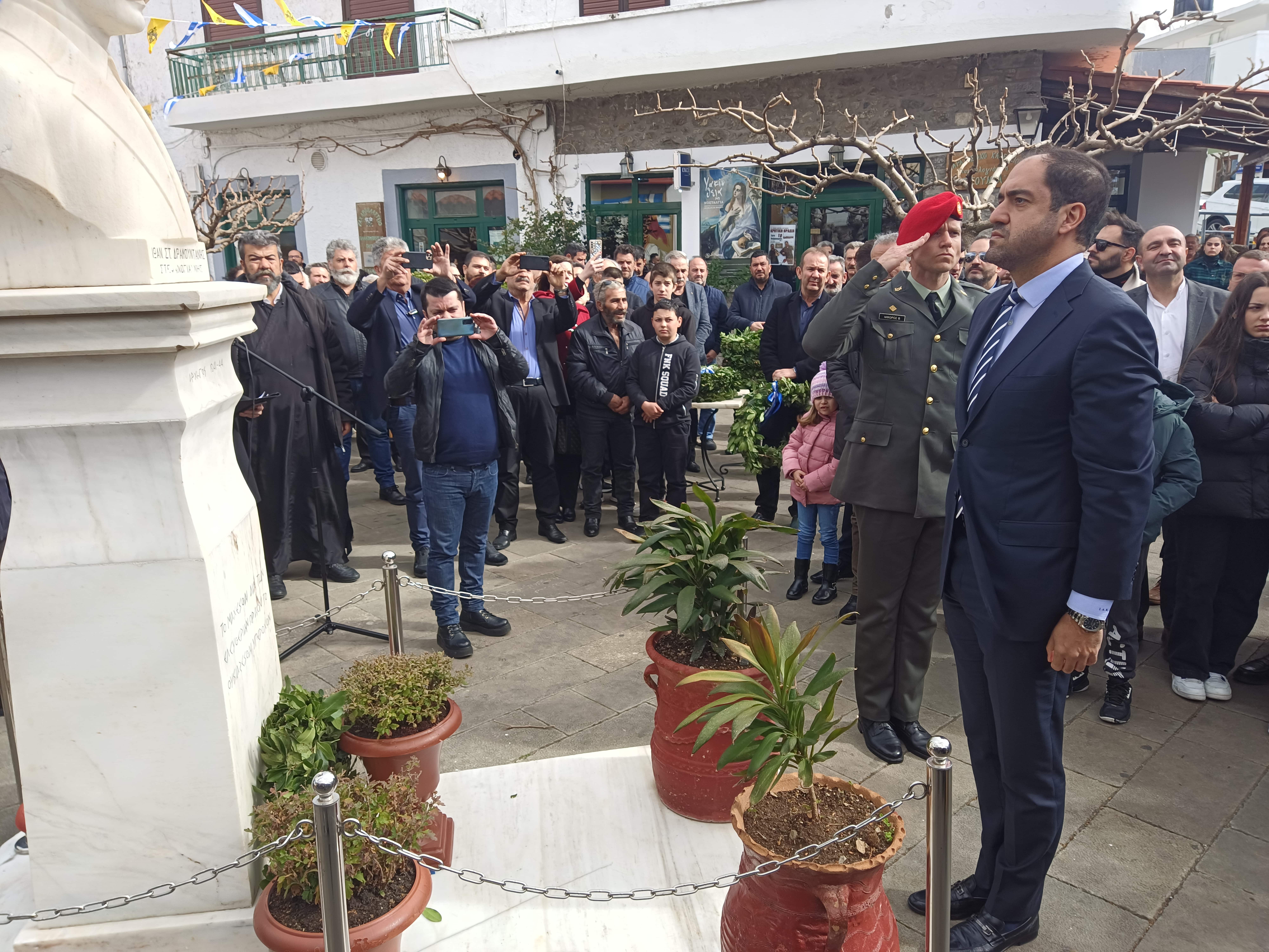 Ο Υφυπουργός Εθνικής Άμυνας κ. Ιωάννης Κεφαλογιάννης, παρέστη χθες, Κυριακή 11 Φεβρουαρίου 2024, στην εκδήλωση μνήμης, που διοργάνωσε το Εργαστήρι Γνώσης, Ιστορίας και Πολιτισμού της ενορίας του Αγίου Γεωργίου υπό την αιγίδα του Δήμου Ανωγείων, για τα 80 χρόνια από την εκτέλεση του Αρχηγού Εθνικής Αντίστασης Ιωάννη Δραμουντάνη – Στεφανογιάννη.