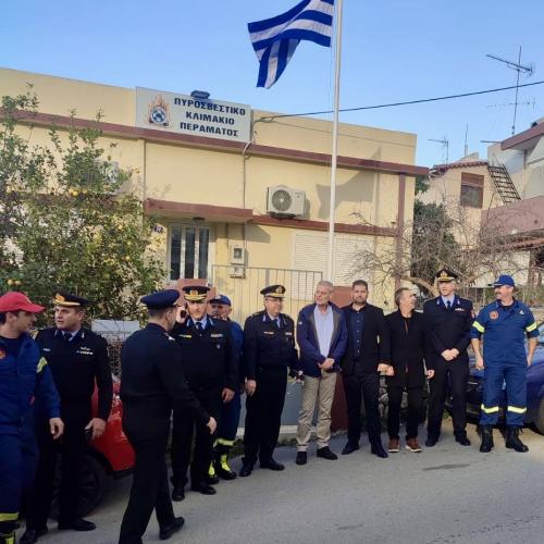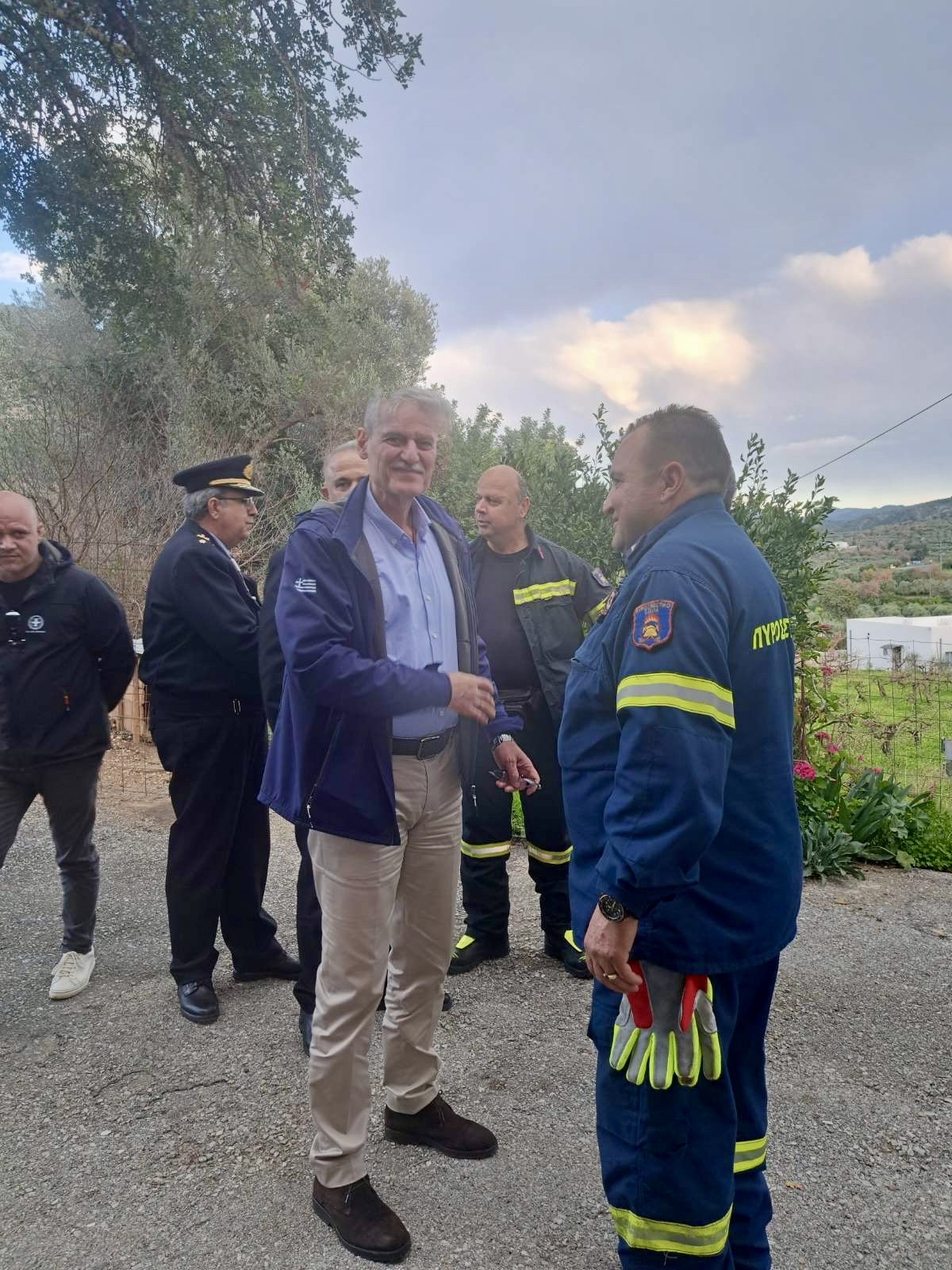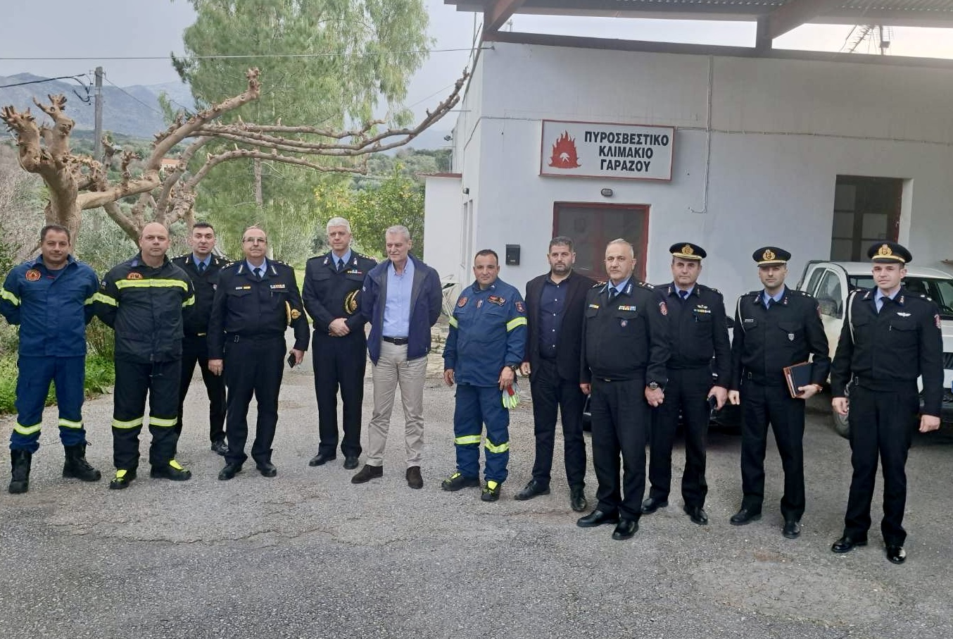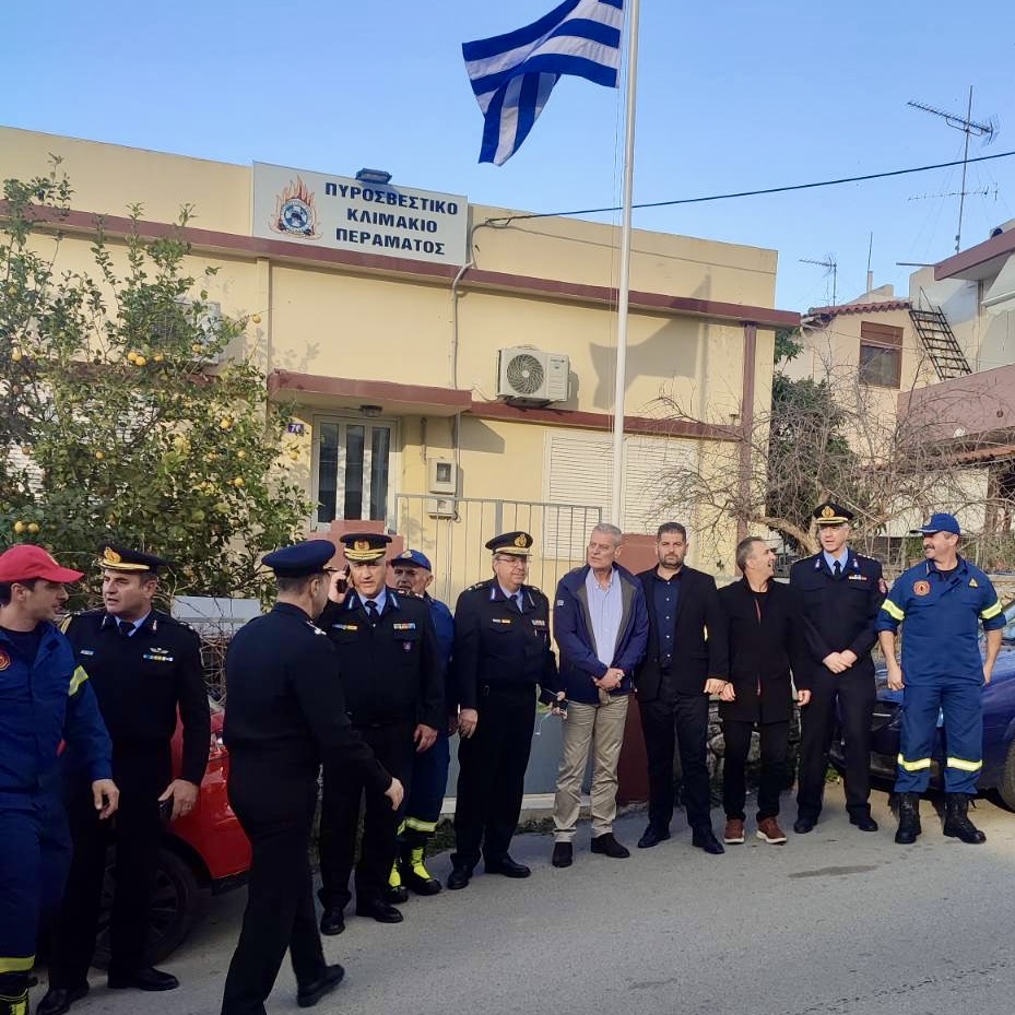 Τον Υφυπουργό συνόδευσε ο Υπαρχηγός του Πυροσβεστικού Σώματος Αντιστράτηγος Ρουμελιώτης Νικόλαος, ο Συντονιστής Επιχειρήσεων Βορείου, Νοτίου Αιγαίου και Κρήτης Υποστράτηγος Γεώργιος Τσικαλάς, ο Διοικητής Πυροσβεστικών Υπηρεσιών Κρήτης Αρχιπύραρχος Σελινιωτάκης Μιχαήλ , ο Διοικητής Πυροσβεστικών Υπηρεσιών Ρεθύμνου πύραρχος Θεοδοσίου Κωνσταντίνος, ο Διοικητής Πυροσβεστικών Υπηρεσιών Ρεθύμνου αντιπύραρχος Τζανιδάκης Νικόλαος, ο Διοικητής Πυροσβεστικού κλιμακίου Περάματος ανθυπυραγός , Οικονομάκης Κωνσταντίνος και ο Διοικητής Πυροσβεστικού κλιμακίου Γαράζου, Παλιεράκης Ηλίας.