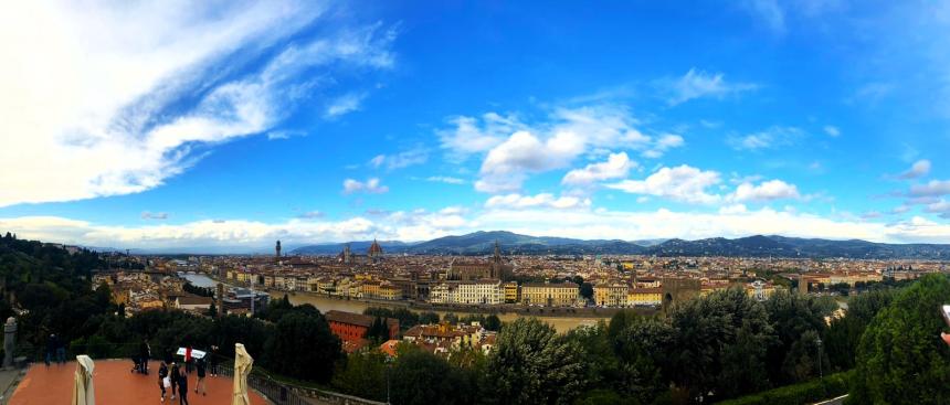 Περνώντας την Ponte Vecchio κι ακολουθώντας ανοδική πορεία, τα βήματα μας, μας οδήγησαν στην Πλατεία Μιχαήλ Αγγέλου (Piazzale Michelangelo). Πρόκειται για ένα σημείο με εκπληκτική θέα στην Φλωρεντία που αξίζει κάποιος να επισκεφτεί. Γυρίζοντας στο κέντρο της πόλης στάση στην Porta San Niccolo, επιβλητική πύλη της πόλης του 14ου αιώνα.