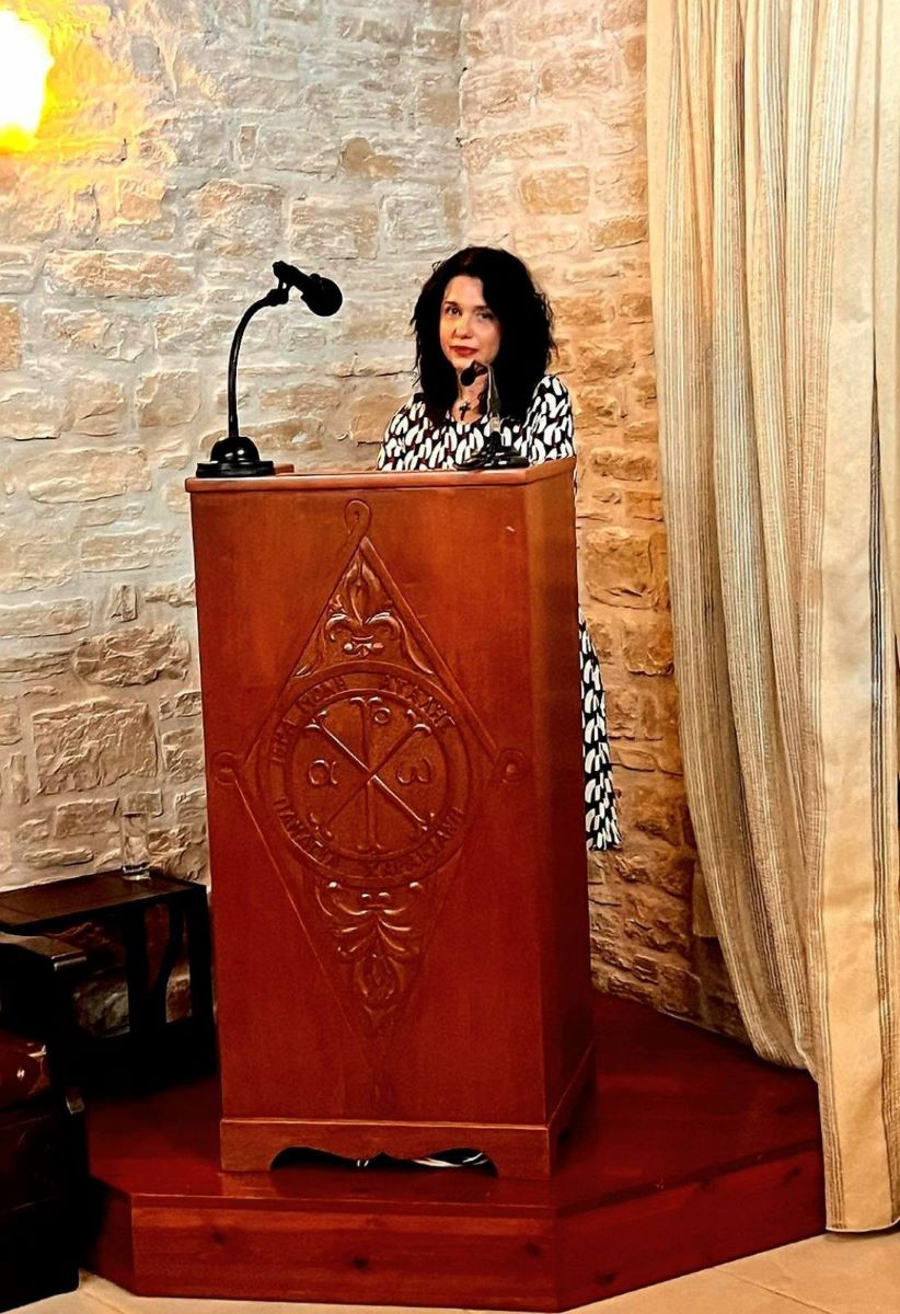Η συγγραφέας πήρε τον λόγο βαθιά συγκινημένη για την τιμητική παρουσία τόσων προσφιλών προσώπων την ημέρα της ονομαστικής της εορτής και για την τιμητική αναγνώριση της προσπάθειάς της. Εξέφρασε την ευχή το ταπεινό της πόνημα να αποτελέσει, με τη Χάρη του Θεού, ένα ακόμη φωτεινό οδοδείκτη για την πορεία μας προς τον ουρανό και την αντάμωσή μας με τους Αγίους.