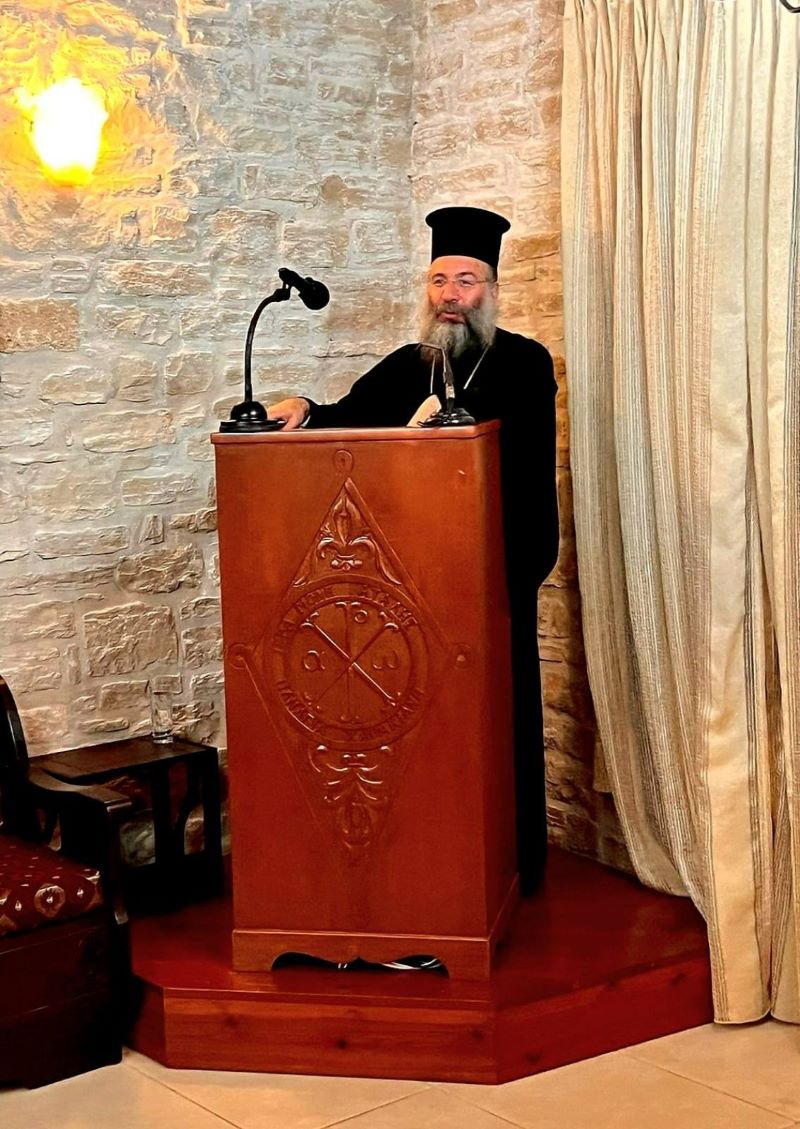 Στην καταληκτική προσλαλιά του, ο Σεβασμιώτατος Μητροπολίτης Ρεθύμνης και Αυλοποτάμου κ. Πρόδρομος εξέφρασε τη βαθιά ικανοποίησή του για την όμορφη εσπερίδα υπό τη σκέπη της Παναγίας μας. Ευχαρίστησε, αρχικά, τα παιδιά του Κατηχητικού, που συμμετείχαν στα θεατρικά δρώμενα, και τις οικογένειές τους για την αγάπη τους στους Αγίους. Στη συνέχεια, ευχαρίστησε τη συγγραφέα που έγινε αιτία για το ευλογημένο αντάμωμα. Τη συνεχάρη για την αξιοποίηση του ταλάντου που της εμπιστεύτηκε ο Θεός, όχι μόνο επειδή το πολλαπλασίασε, αλλά επειδή το έκανε υπόθεση της Εκκλησίας, προσφέροντας ένα έργο, που γίνεται αφορμή να ψηλαφίσουμε τα ιερά πρόσωπα των Αγίων και να εμπνευστούμε από το ηρωικό τους φρόνημα. Εξέφρασε, μάλιστα, και την ευχή σύντομα να ανταμώσουμε όλοι ξανά με αφορμή το επόμενο πόνημά της.