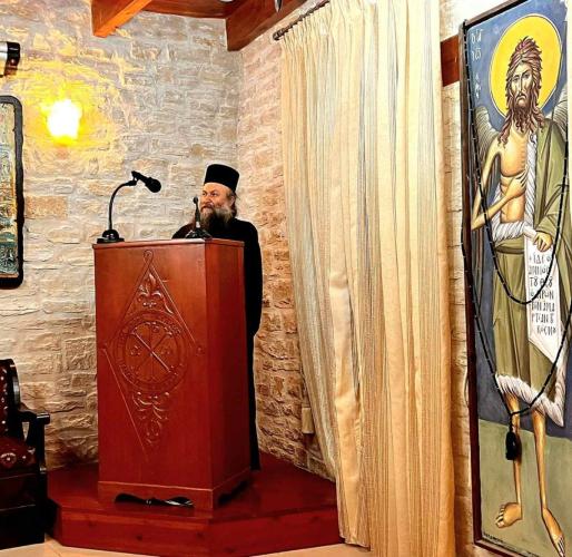 Ο Ηγούμενος της Ιεράς Μονής Τιμίου Προδρόμου Ατάλης-Μπαλή, Πανοσιολ. Αρχιμ. Παρθένιος Καλυβιανάκης, υποδέχτηκε όλους με χαρά και συντόνισε την εκδήλωση, παρουσιάζοντας αρχικά τον εκλεκτό ομιλητή, τον ελλογιμ. Καθηγητή της Πατριαρχικής Ανωτάτης Εκκλησιαστικής Ακαδημίας Κρήτης, δρα Εμμανουήλ Ανδρουλιδάκη.