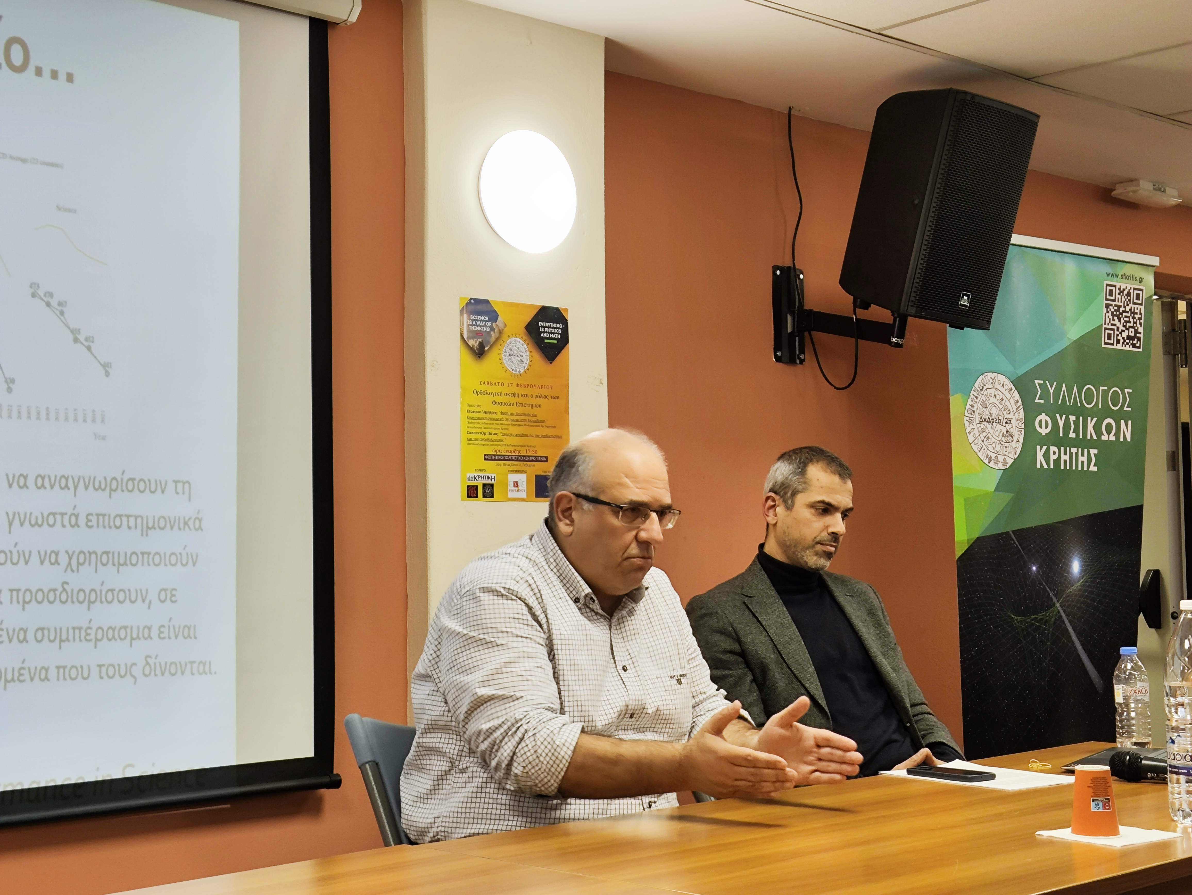 Το Σάββατο 17/02 πραγματοποιήθηκε με μεγάλη επιτυχία και ανταπόκριση από το κοινό της πόλης του Ρεθύμνου η εκδήλωση «Ορθολογική σκέψη και ο ρόλος των Φυσικών Επιστημών». Μία εκδήλωση που την πλαισίωσαν οι άρτιες και εξαιρετικές ομιλίες των κ.Σταύρου και κ.Σαπουντζή σε συνδυασμό με την ακόμη πιο ενδιαφέρουσα συζήτηση που ακολούθησε.