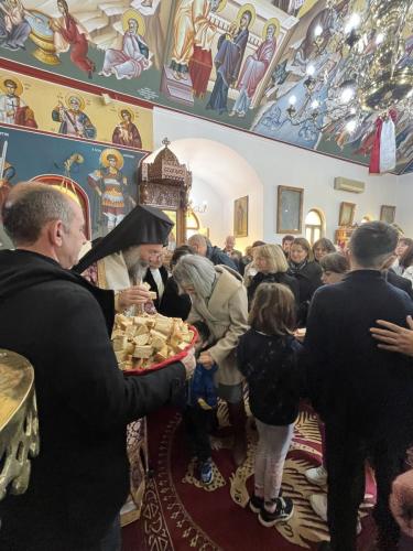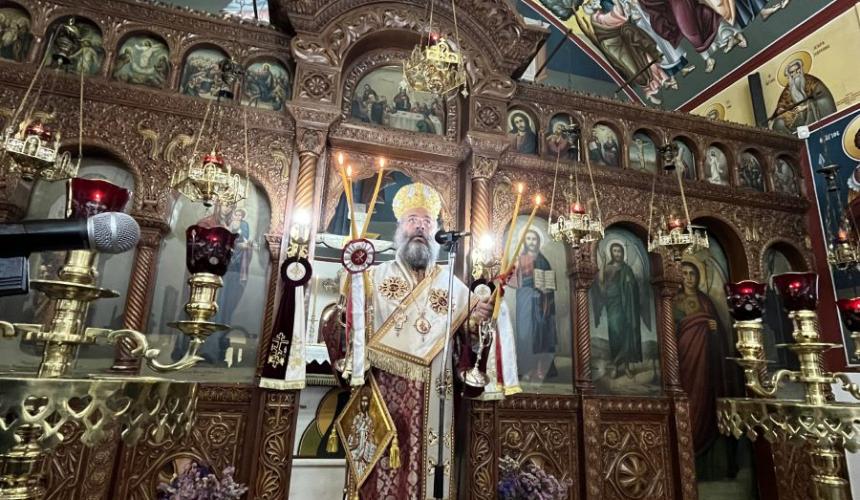 Ο Σεβασμιώτατος, στην προσλαλιά του, αναφέρθηκε στην ευαγγελική περικοπή της Χαναναίας και στον πόθο και την καρδιακή προσευχή της μάνας για την θεραπεία του παιδιού της.