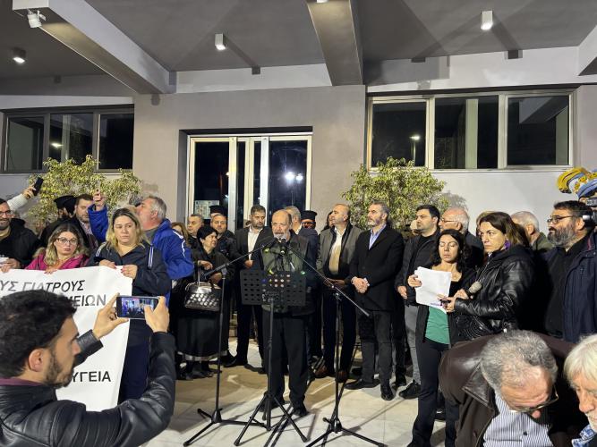 «Η κοινωνία του Ρεθύμνου με την παρουσία της, αντιστέκεται για ακόμα μία φορά, στην σχεδιασμένη υποστελέχωση του Νοσοκομείου του νομού μας. Έχει γίνει πλέον από όλους κατανοητό, ότι οι διαχρονικές ελλείψεις ιατρικού προσωπικού από τις σημαντικές κλινικές του Νοσοκομείου, αποτελεί απόρροια του στρατηγικού στόχου της κυβέρνησης να υποβαθμίσει το Εθνικό Σύστημα Υγείας και συγχρόνως να εξαναγκάσει τους πολίτες στις ιδιωτικές δομές υγείας.