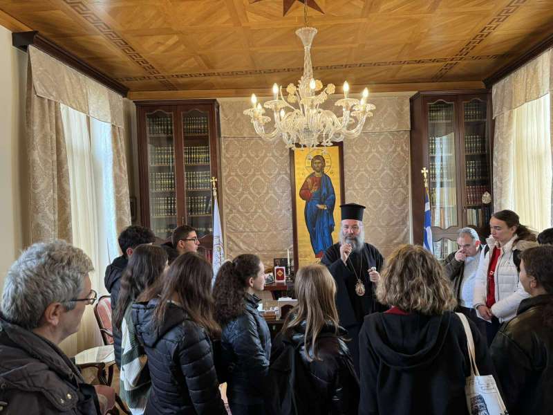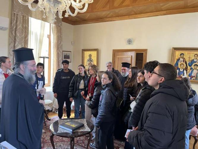 Επίσης, ο Σεβασμιώτατος υποδέχθηκε αντιπροσωπεία μαθητών και καθηγητών από το 4ο Γυμνάσιο Ρεθύμνου, με τους οποίους είχε τη χαρά να συζητήσει σχετικά με τη ζωή και τα μηνύματα των Αγίων Τεσσάρων Μαρτύρων και άλλα θέματα της επικαιρότητας που απασχολούν τα νέα παιδιά, τονίζοντας το μήνυμα του σεβασμού στο ανθρώπινο πρόσωπο και της προσπάθειας όλων μας για την εξάλειψη συμπτωμάτων εκφοβισμού και βίας, τα οποία πολλές φορές συναντώνται και μεταξύ των νέων ανθρώπων.