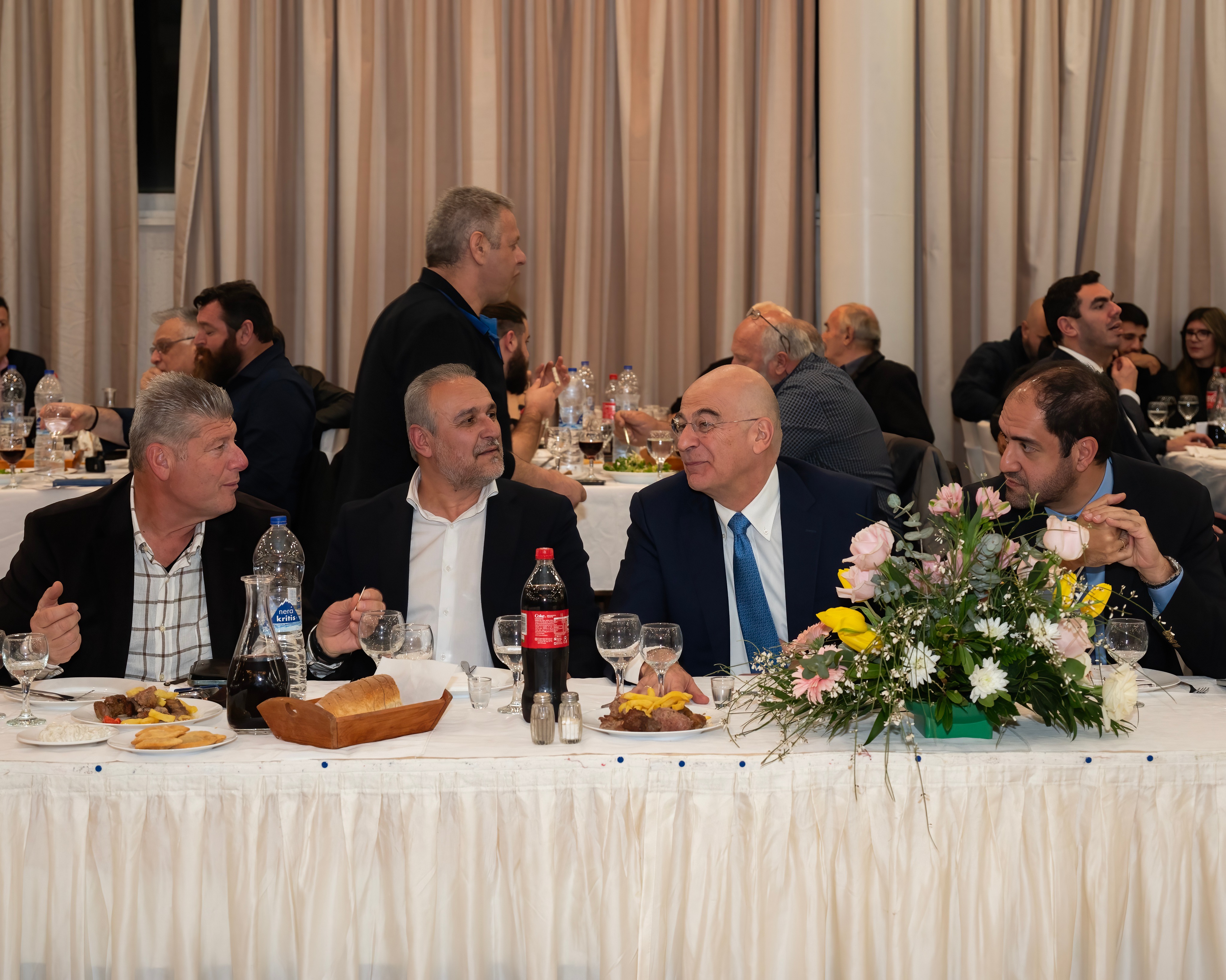 - Ο Υπουργός Νίκος Δένδιας πέρασε από όλα τα τραπέζια και χαιρέτησε όλους τους παρευρισκόμενους, μπήκε ακόμα και στους χώρους του προσωπικού και τους ευχαρίστησε όλους για την δουλειά τους και τις υπηρεσίες τους καθ' όλη τη διάρκεια της βραδιάς.