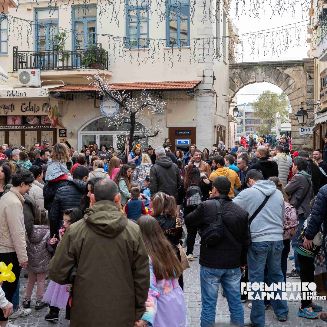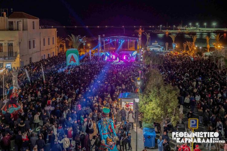 Μια διαδρομή από την Πύλη Guora στην Πύλη της Άμμου όπου η κεντρική πλατεία του Ρεθύμνου αποδείχθηκε «μικρή» για να χωρέσει τους χιλιάδες φίλους του Ρεθεμνιώτικου καρναβαλιού.