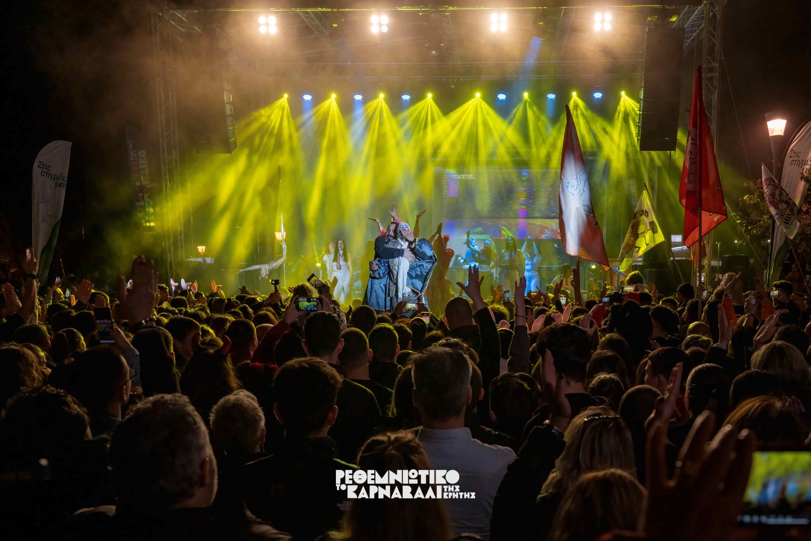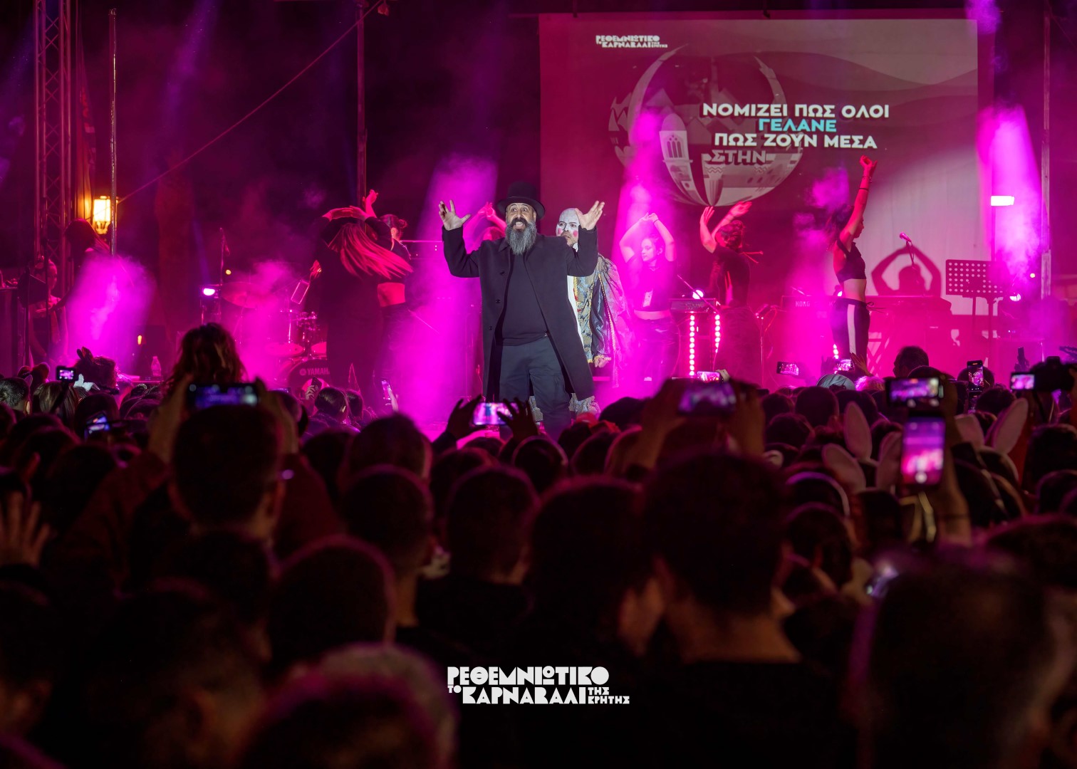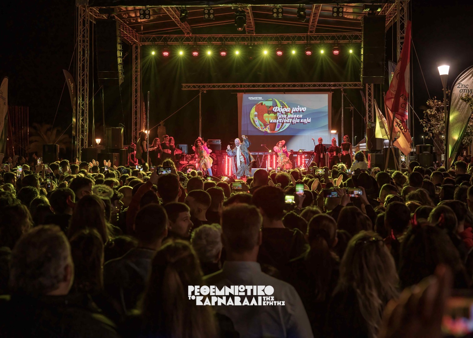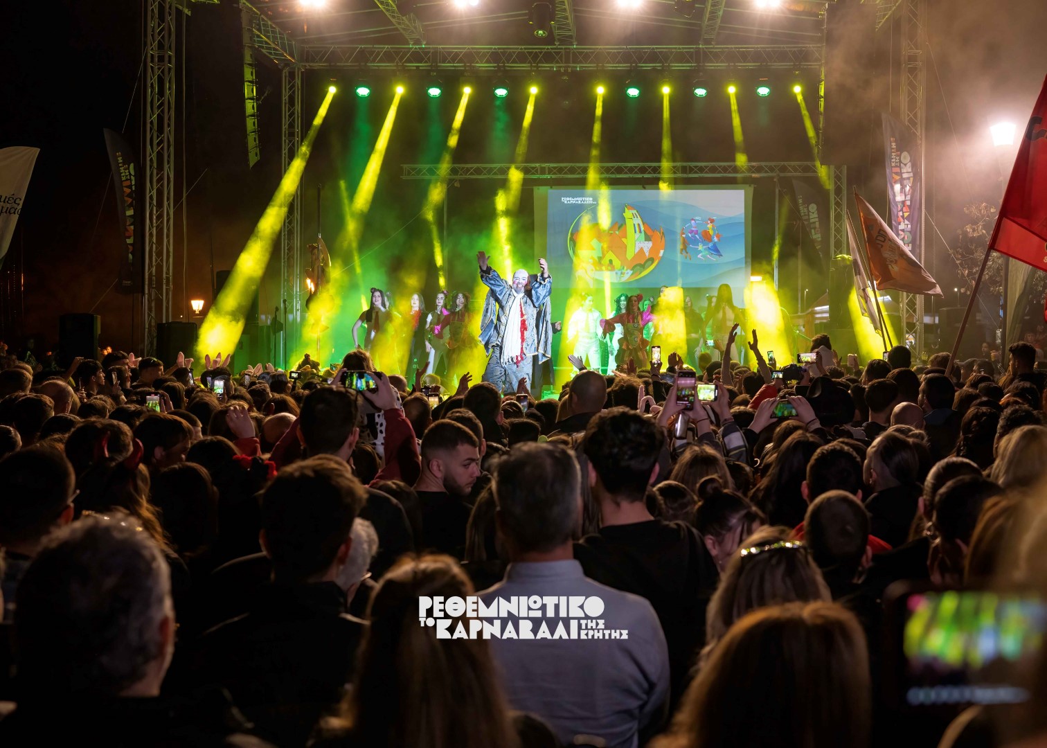 Ο κόσμος πλέον, είχε δημιουργήσει το αδιαχώρητο και ο Δήμαρχος Ρεθύμνης κ. Γιώργης Χ. Μαρινάκης ανέβηκε στην σκηνή μαζί με την φετινή πανέμορφη Βασίλισσα και κήρυξε την έναρξη του Ρεθεμνιώτικου Καρναβαλιού 2024 μέσα σε κλίμα ενθουσιασμού.