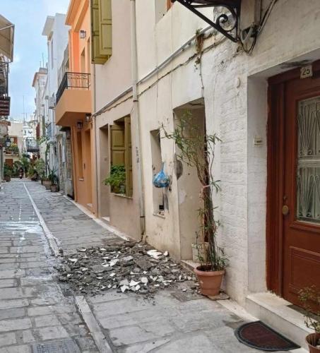 Αναστάτωση προκλήθηκε στην οδό Πατελάρου στο Ιστορικό Κέντρο του Ρεθύμνου όταν κατέρρευσε τμήμα από περβάζι, με αποτέλεσμα τα μπάζα να πέσουν με θόρυβο στο στενό δρόμο της παλιάς πόλης. Το ευτύχημα ήταν ότι εκεί τη στιγμή δεν περνούσε κανείς από εκεί και αποφεύχθηκαν τα χειρότερα.