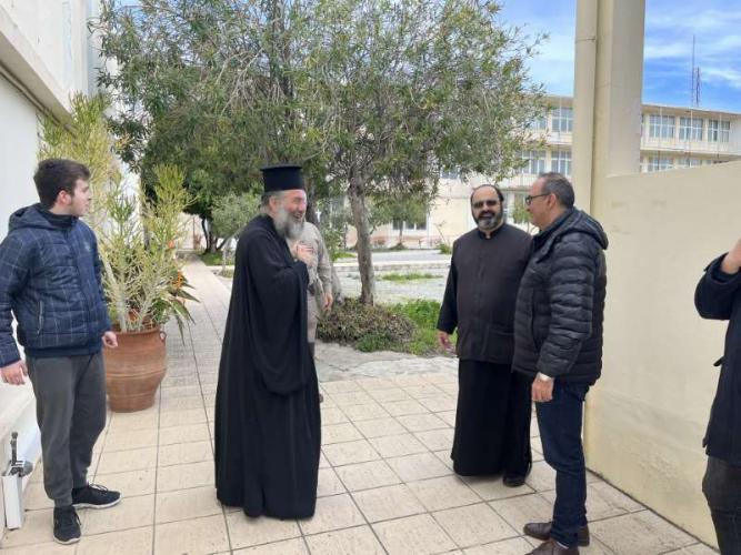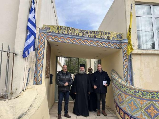 Το πρωί της Τετάρτης, 28ης Φεβρουαρίου 2024, ο Σεβασμιώτατος Μητροπολίτης Ρεθύμνης και Αυλοποτάμου κ. Πρόδρομος, μετά την επιστροφή του από την Κωνσταντινούπολη, μετέβη στην Πατριαρχική Ανωτάτη Εκκλησιαστική Ακαδημία Κρήτης (Π.Α.Ε.Α.Κ.), στο Ηράκλειο, όπου είχε συνάντηση με τον Πρόεδρο του Ακαδημαϊκού Συμβουλίου, ελλογιμ. Καθηγητή κ. Μιχαήλ Στρουμπάκη, και Καθηγητές της Ακαδημίας, με τους οποίους συνεργάσθηκε για την προετοιμασία της Θεολογικής Ημερίδας, η οποία θα πραγματοποιηθεί, συν Θεώ, στο Ρέθυμνο, την 5η Οκτωβρίου 2024, στο πλαίσιο των εορτασμών της Επετείου των 200 ετών από τη μαρτυρική τελείωση των εν Ρεθύμνη Αγίων Τεσσάρων Νεομαρτύρων.