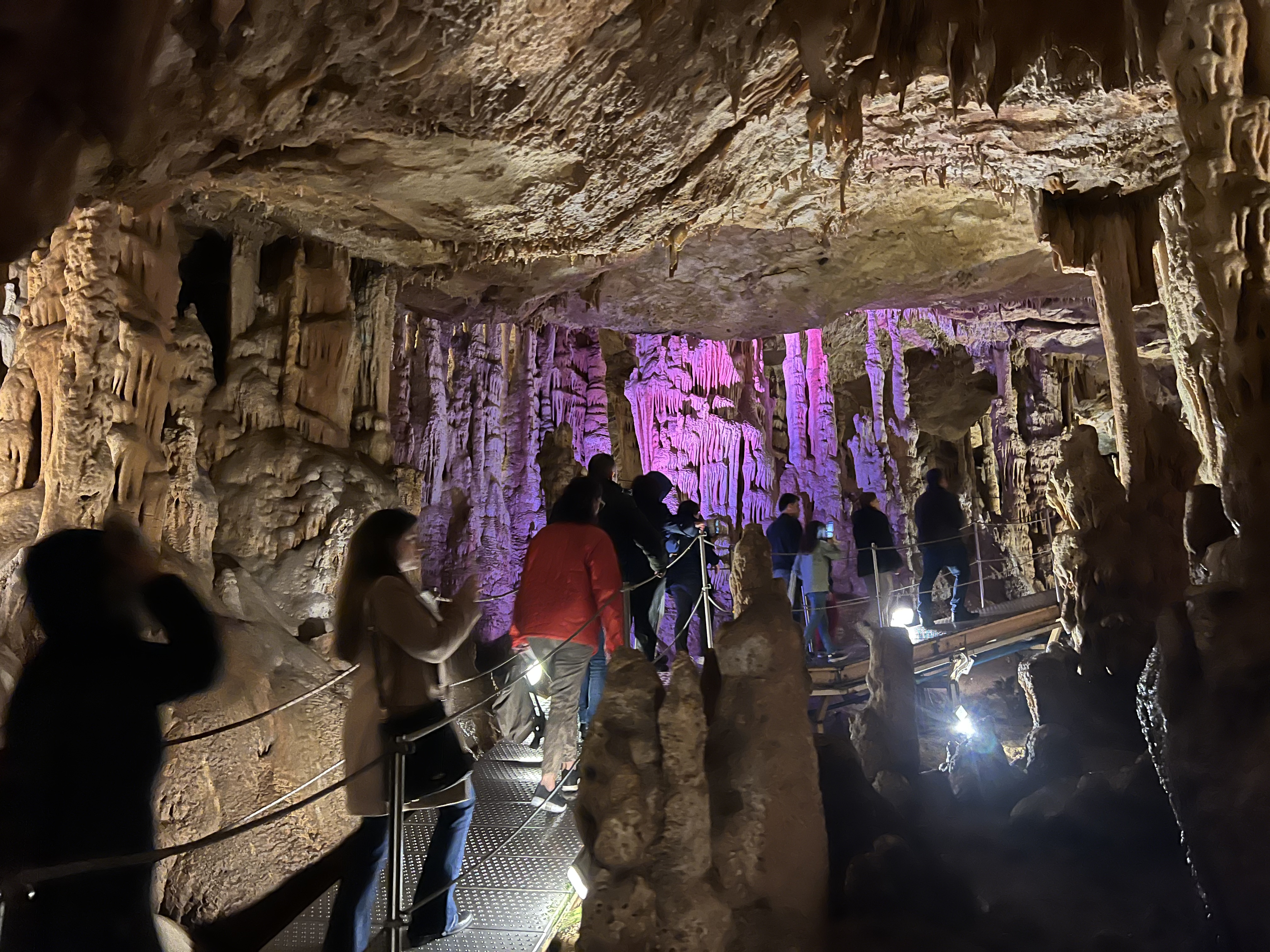 Στη συνέχεια επισκεφτήκαμε το Σπήλαιο «Σφενδόνη» στα Ζωνιανά είναι ένα από τα ομορφότερα σπήλαια της Ελλάδας με έκταση τα 3500τ.μ.. Πρόκειται για ένα αρκετά μεγάλο σπήλαιο με διεύθυνση Βορρά-Νότο, μέγιστο μήκος σε ευθεία 145 μέτρα και έκταση 3.000 τετραγωνικά μέτρα περίπου, με πολλούς θαλάμους (Των Αρμονιών, Το Άδυτο της Νεράιδας, το Παρεκκλήσι, το Ανάκτορο, ο Παρθενώνας, το Πανόραμα, η Μητρόπολη, του Χαμένου Παιδιού, τα Απολιθωμένα Κύματα) που διαδέχονται ο ένας τον άλλο. Έχει πλούσιο σταλακτικό και σταλαγμιτικό διάκοσμο και προς το τέλος του υπάρχουν αρκετά απολιθωμένα κύματα (λιθωματικές λεκάνες).Η ξενάγηση μας έγινε με μεγάλη λεπτομέρεια και όρεξη από τον από τον κ Παρασύρη Τάσο τον οποίο και ευχαριστούμε. Επίσης ευχαριστούμε για την χορήγηση δωρεάν εισόδου προς το σύλλογο μας ,τον Πολιτιστικό Σύλλογο Ζωνιανών, την Κοινότητα Ζωνιανών και ιδιαίτερα τον εκπρόσωπό της κ. Παρασύρη Κωνσταντίνο .