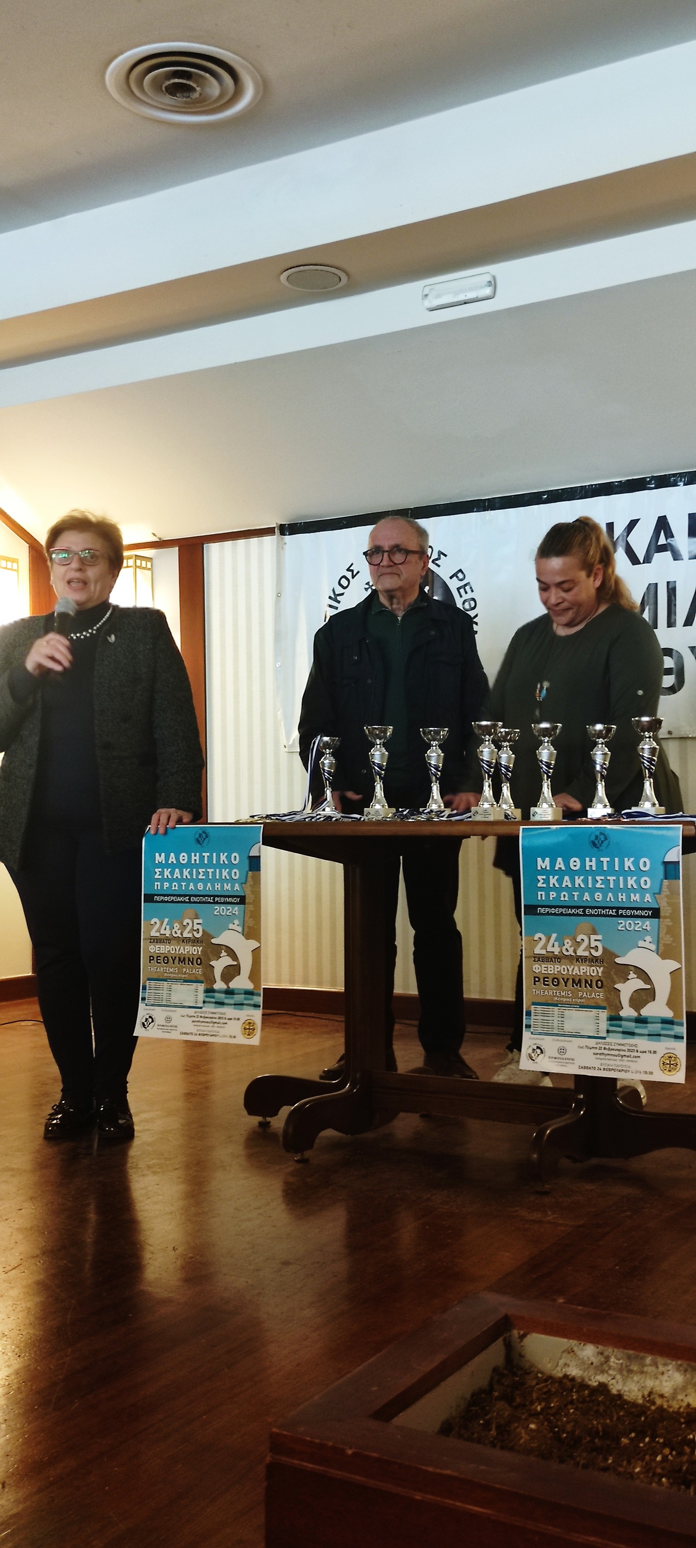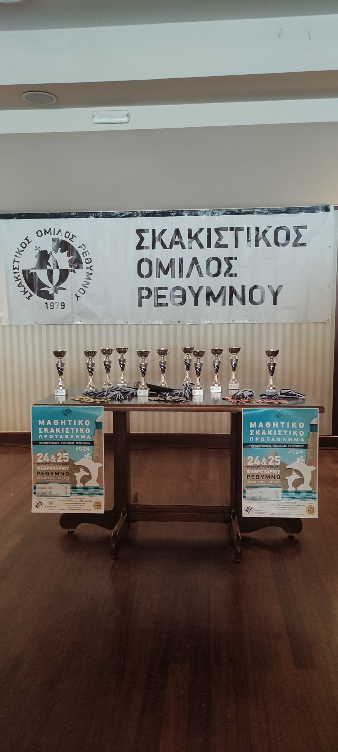 Το Σαββατοκύριακο 24 και 25 Φεβρουαρίου 2024 διεξήχθη το 20ο Ατομικό Μαθητικό Πρωτάθλημα Σκάκι Περιφερειακής Ενότητας (Π.Ε.) Ρεθύμνου. Η φετινή αναβαθμισμένη διοργάνωση, ξεχώρισε από αντίστοιχες των προηγούμενων ετών καθώς προκηρύχτηκαν 7 γύροι αγώνων, Σάββατο απόγευμα και Κυριακή πρωί (αντί 5 που γινόταν προγενέστερα) απορρέοντας έτσι αντικειμενικότερα αποτελέσματα στους ομίλους και περισσότερη αγωνιστική εμπειρία για τους μαθητές-λάτρεις του αθλήματος που συμμετείχαν.