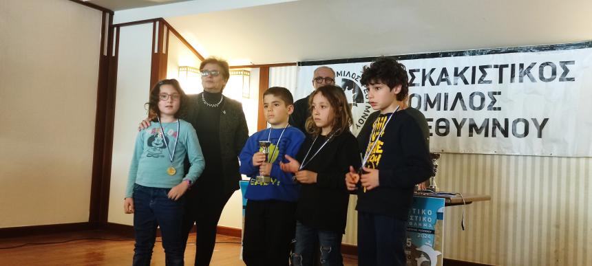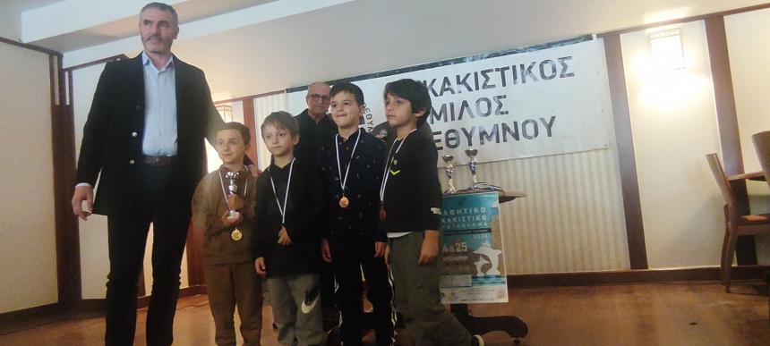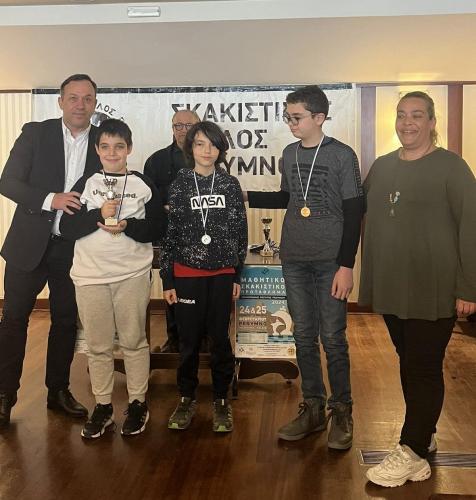3οι στα Αγόρια (ισοβαθμία): Μοναχός Γεώργιος (8ο Δημ.Σχ) 2.5/5, Καραμπάλιος Δημήτριος (16ο Δημ.Σχ) 2.5/5 και Παπουτσιδάκης Παναγιώτης (6ο Δημ.Σχ) 2.5/5 Χάλκινο μετάλλιο & πρόκριση.