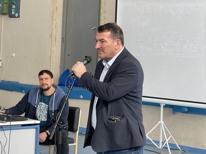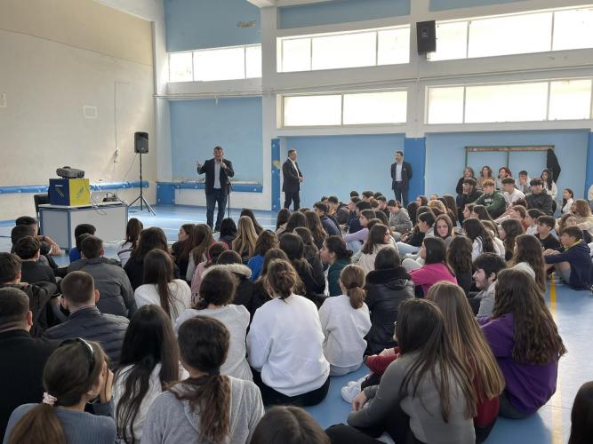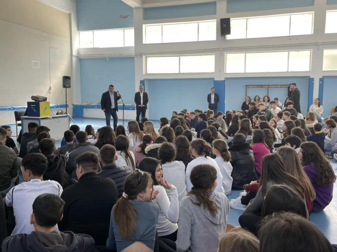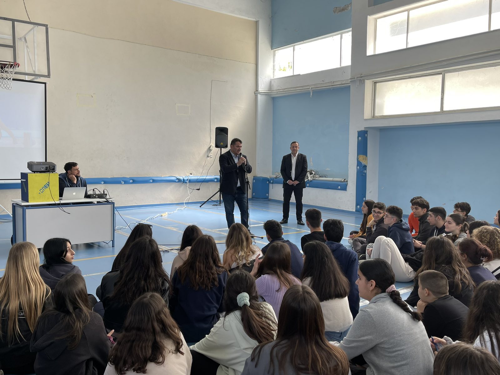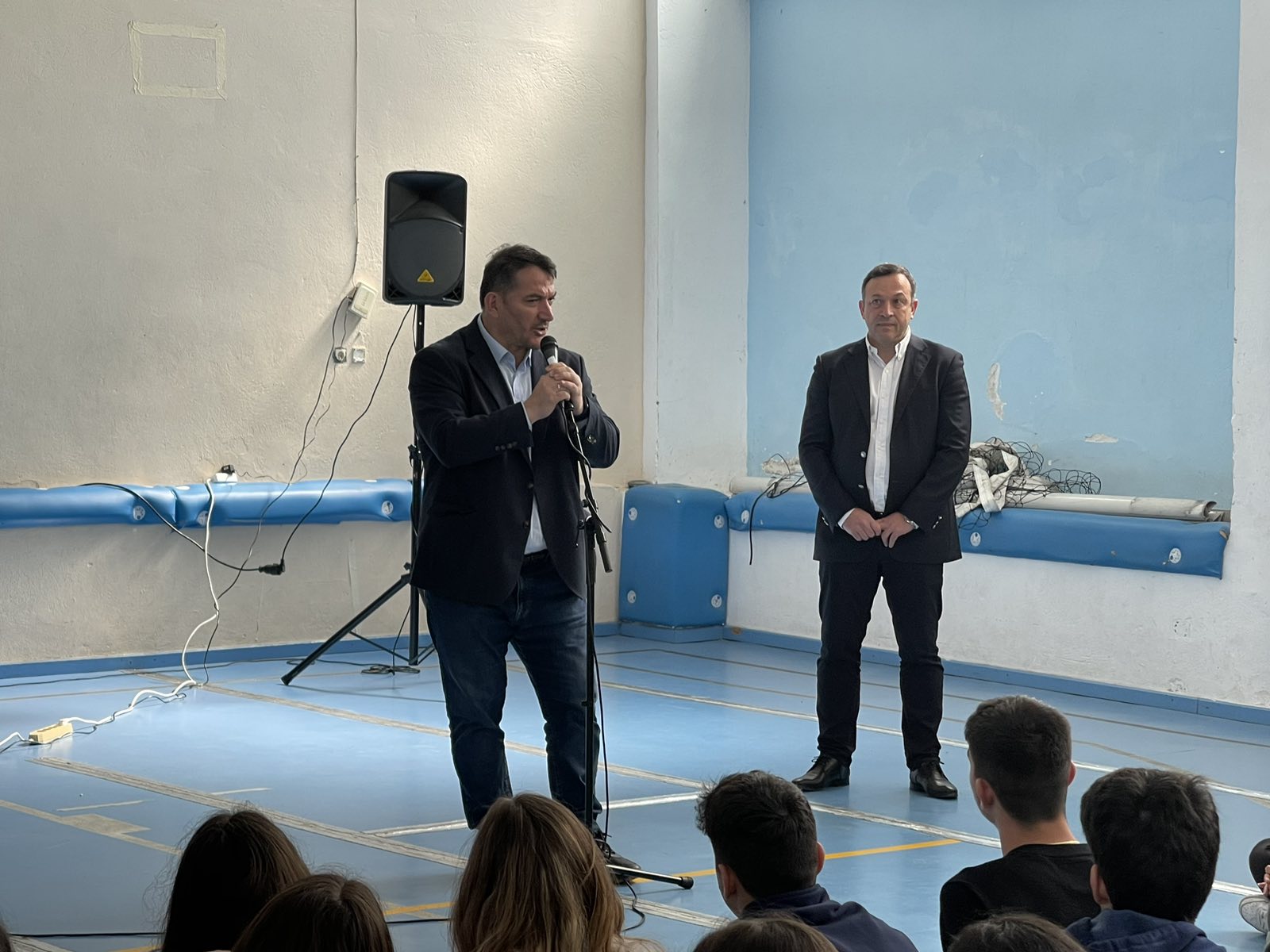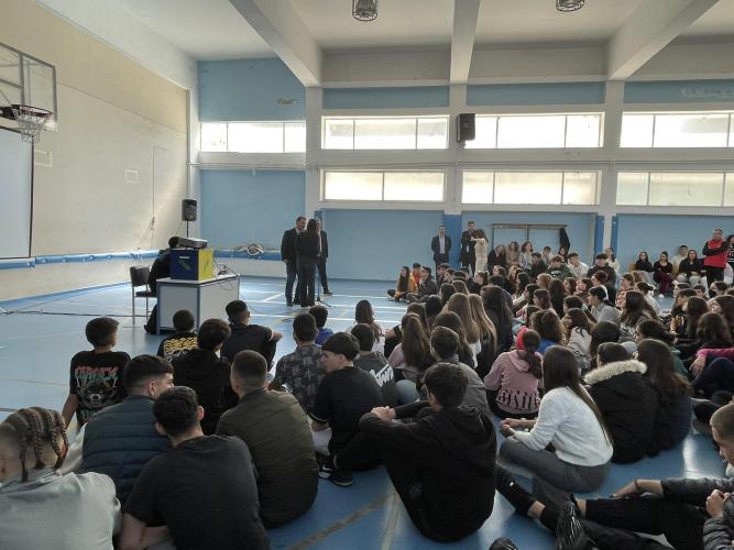 Στο Ρέθυμνο επισκέφθηκε το 2ο Γυμνάσιο όπου μίλησε σε μαθητές για τον αθλητισμό και απάντησε σε όλες τις ερωτήσεις τους. Τον Πύρρο Δήμα υποδέχθηκε στο σχολείο ο αντιδήμαρχος αθλητισμού Νίκος Προβιάς και ο εκπρόσωπος του συλλόγου γονέων και φίλων ατόμων με αυτισμό Ρεθύμνου Γαβριήλ Τσουντάνης.