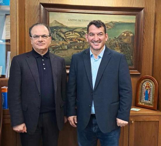 Ο Δήμαρχος ευχαρίστησε τον κ. Δήμα για την επίσκεψη, του ευχήθηκε καλή επιτυχία σε κάθε του δράση, του δώρισε το καλαίσθητο λεύκωμα φωτογραφιών «Κρήτη Ανωθεν» μια και όπως τόνισε «Οι πρωταθλητές κοιτούν και στοχεύουν πάντα ψηλά!» και ανανέωσαν την υπόσχεση της προσεχούς συνάντησής τους στις εκδηλώσεις της Τσικνοπέμπτης στο πλαίσιο του Ρεθεμνιώτικου Καρναβαλιού.