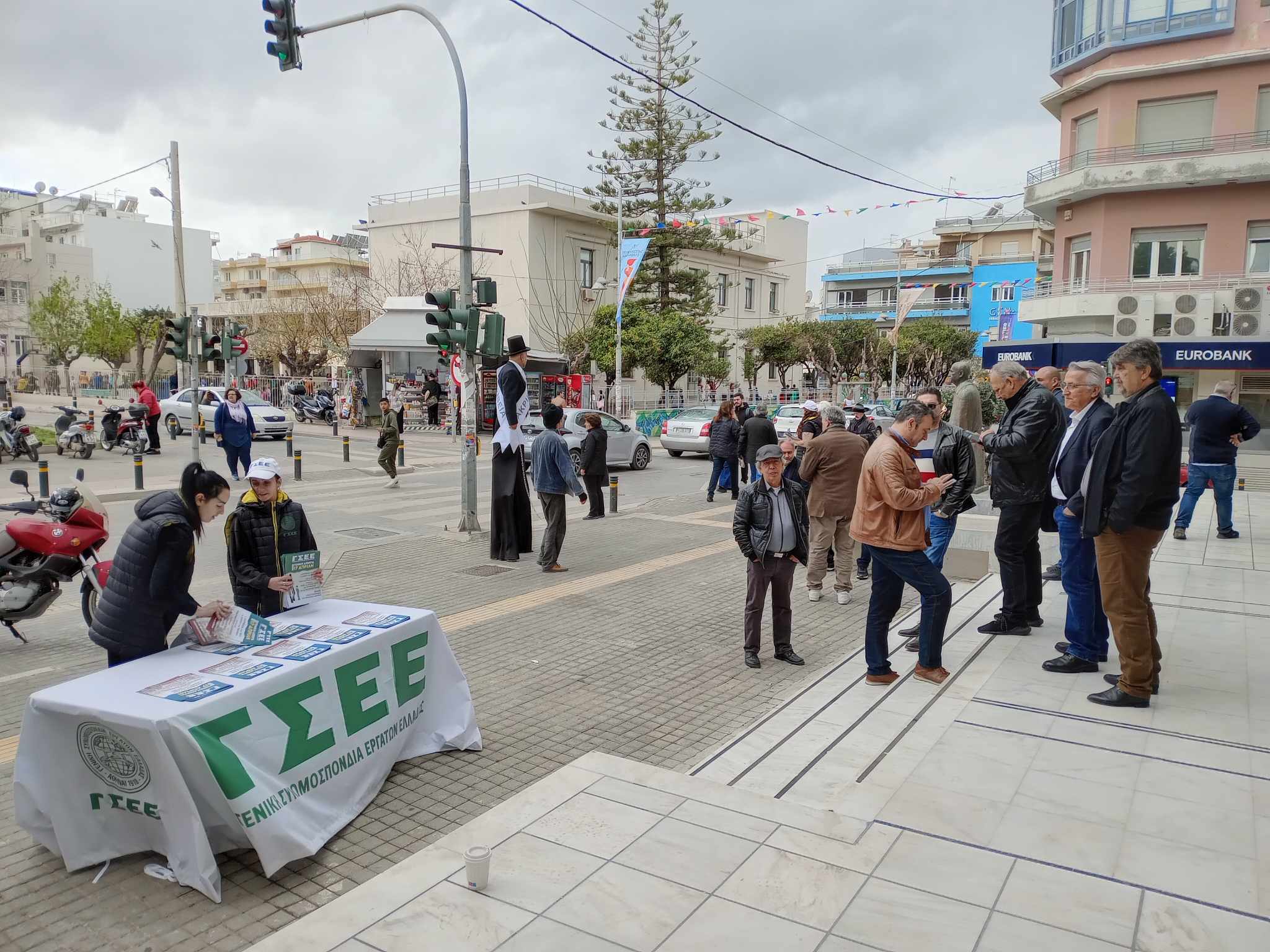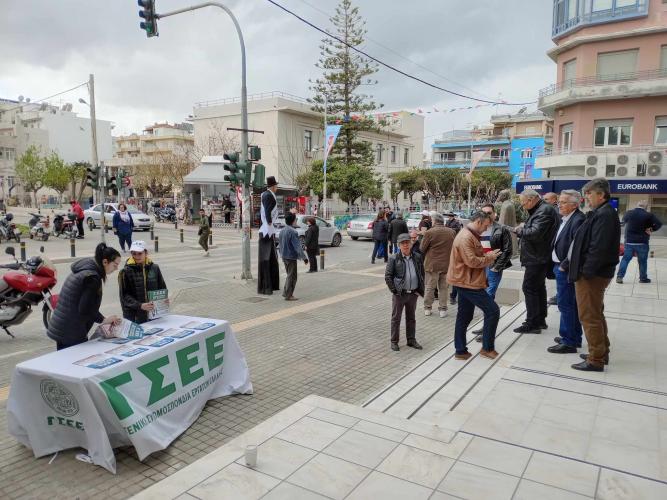 Μια ξεχωριστή και πρωτότυπη παρουσία έχουν σήμερα η ΓΣΕΕ και το Εργατοϋπαλληλικό Κέντρο Ρεθύμνου έξω από το δημαρχείο Ρεθύμνου, στην οποία παρευρίσκεται και ο Πρόεδρος της Γενικής Συνομοσπονδίας Εργατών Ελλάδας Γιάννης Παναγόπουλος.