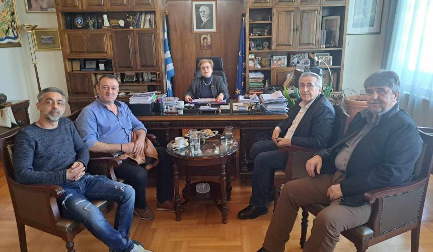 Εθιμοτυπική επίσκεψη στην Αντιπεριφερειάρχη Ρεθύμνης, κα Μαρία Λιονή, πραγματοποίησε σήμερα ο Πρόεδρος της ΓΣΕΕ, κ. Γιάννης Παναγόπουλος, συνοδευόμενος από τον Αντιπεριφερειάρχη Κοινωνικής Πολιτικής και Αλληλεγγύης της Περιφέρειας Κρήτης και Πρόεδρο του Εργατικού Κέντρου Ηρακλείου, κ. Στέλιο Βοργιά, τον Πρόεδρο του Εργατικού Κέντρου Ρεθύμνου, κ. Κώστα Νικολιδάκη και το Μέλος του ΔΣ κ. Νίκο Νημά.