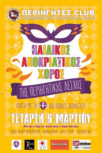 Η Περιηγητική Λέσχη Ρεθύμνου και οι Περιηγητές Club όπως κάθε χρόνο θα περιμένουν τους μικρούς τους φίλους για το μεγάλο παιδικό αποκριάτικο πάρτι στην Αίθουσα της Περιηγητικής Λέσχης (Αγίου Φραγκίσκου 2).