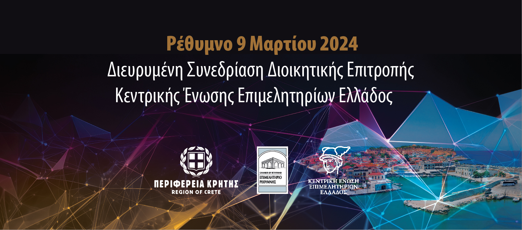 - 10.00–10.10: Καλωσόρισμα - Χαιρετισμός κ. Γεωργίου Γιακουμάκη, Πρόεδρου Επιμελητηρίου Ρεθύμνης.