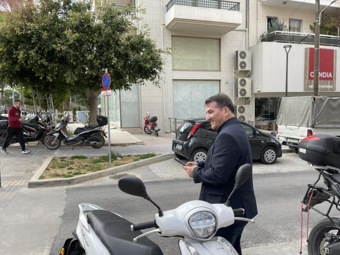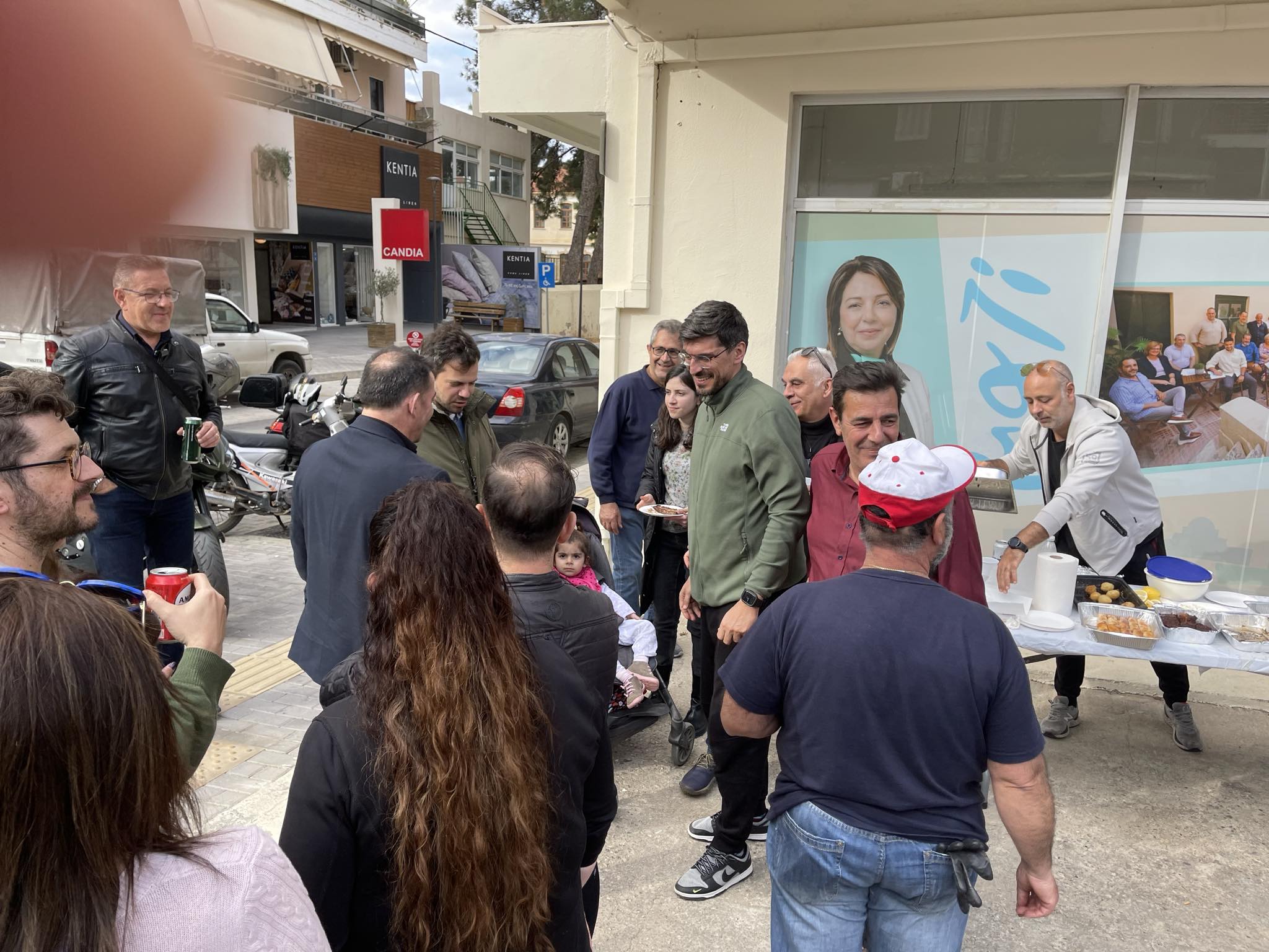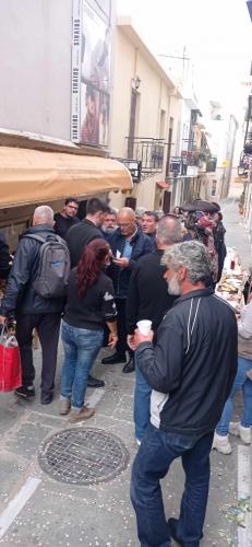 Τον τέσσερις φορές Ολυμπιονίκης συνοδεύεται από τον Αντιδήμαρχο Αθλητισμού Ρεθύμνου κ. Νίκο Προβιά. Μεταξύ άλλων βρέθηκε και στο στέκι των φετινών νικητών του κυνηγιού του θησαυρού "Αδιάφοροι - Αδιάφθοροι" όπου έχουν πάει και άλλες καρναβαλικές και κυνηγετικές ομάδες για τα συγχαρητήρια και διασκεδάζουν όλοι μαζί παρέα.