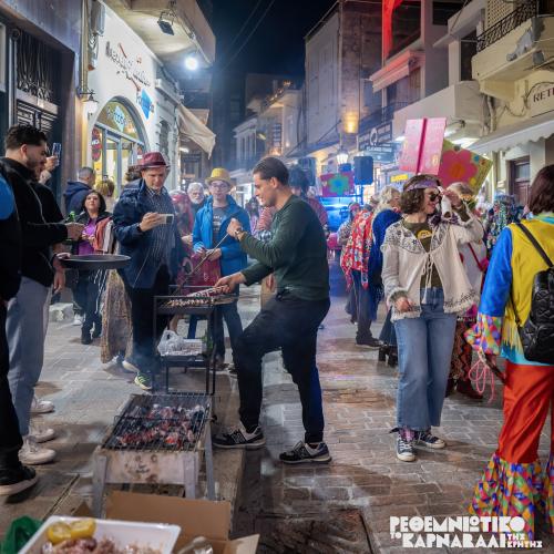 Τα γλέντια που είχαν στηθεί από το μεσημέρι στους δρόμους της πόλης, συνεχίστηκαν το βράδυ από τις ομάδες του Ρεθεμνιώτικου Καρναβαλιού και εκατοντάδες Ρεθεμνιώτες αλλά και επισκέπτες από κάθε γωνιά της Κρήτης, χάρηκαν μια μοναδική βραδιά κεφιού και διασκέδασης.