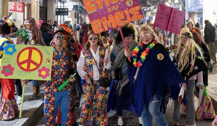 Τα πάρτι της παλιάς πόλης οργάνωσαν οι ομάδες: Εμείς και Εμείς, Περιηγητές Club, Τα Παρτάλια, Άσχετοι Club, Δακτυλοδεικτούμενοι, Oloi Vitsiozoi και βεβαίως οι Στρίγγλες με τα μοναδικά "Καψαλάκεια"!