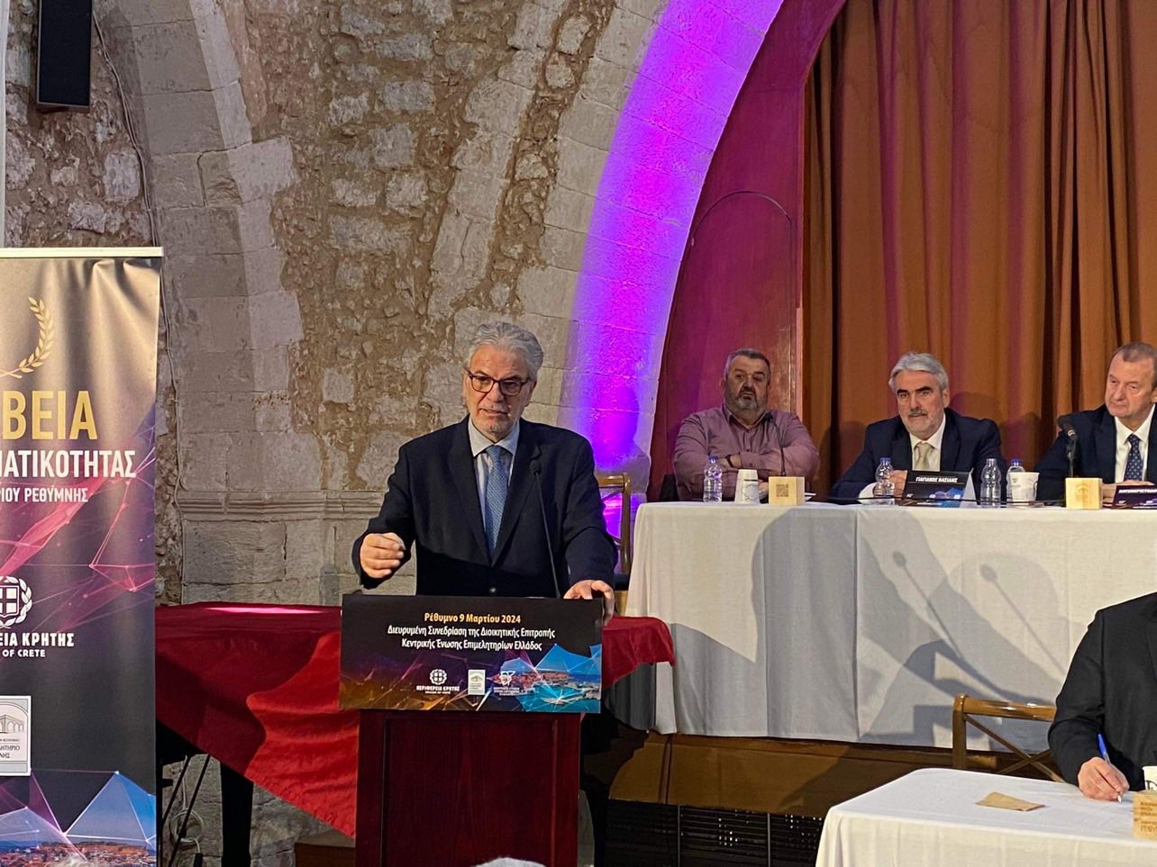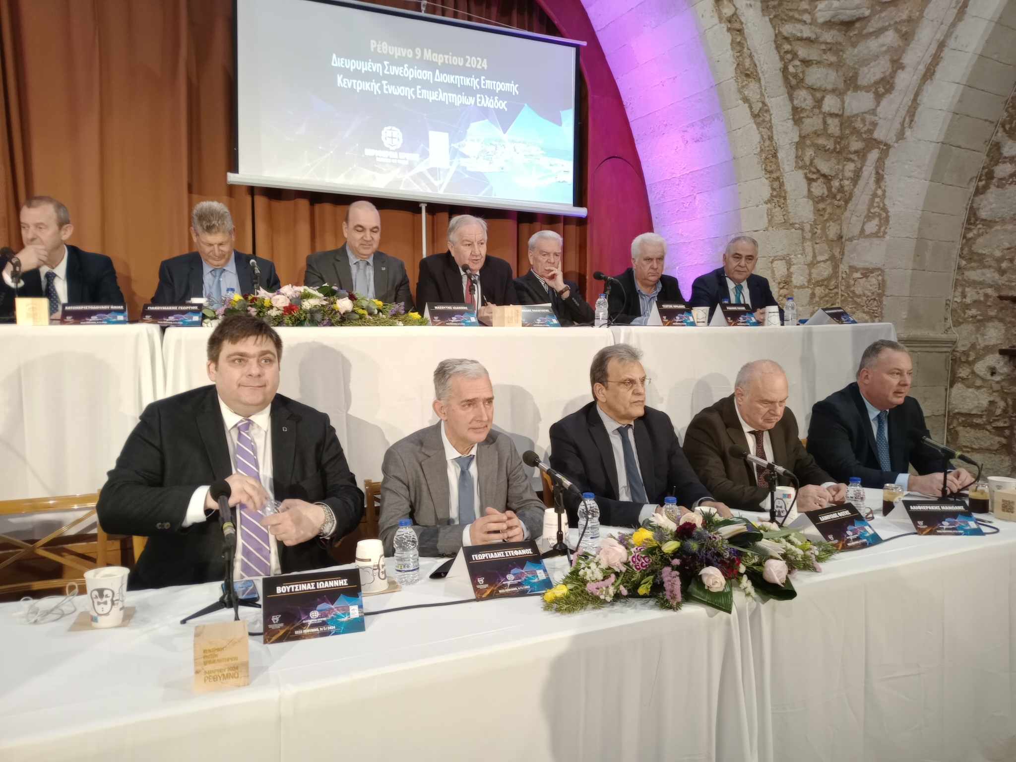 Παρουσία συνολικά πέντε υπουργών της κυβέρνησης και υψηλοί προσκεκλημένοι από όλη την χώρα συμμετέχουν στις εργασίες της διευρυμένης συνεδρίασης της Διοικητικής Επιτροπής της Κεντρικής Ένωσης Επιμελητηρίων, την οποία φιλοξενεί το Επιμελητήριο Ρεθύμνης, με την υποστήριξη της Περιφέρειας Κρήτης σήμερα στο Ρέθυμνο.