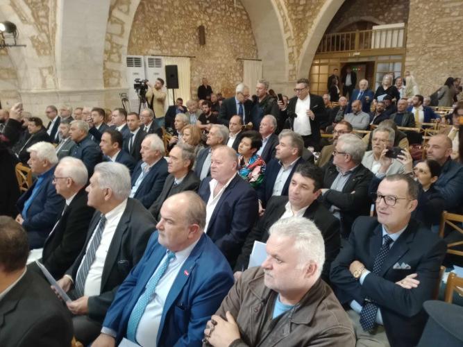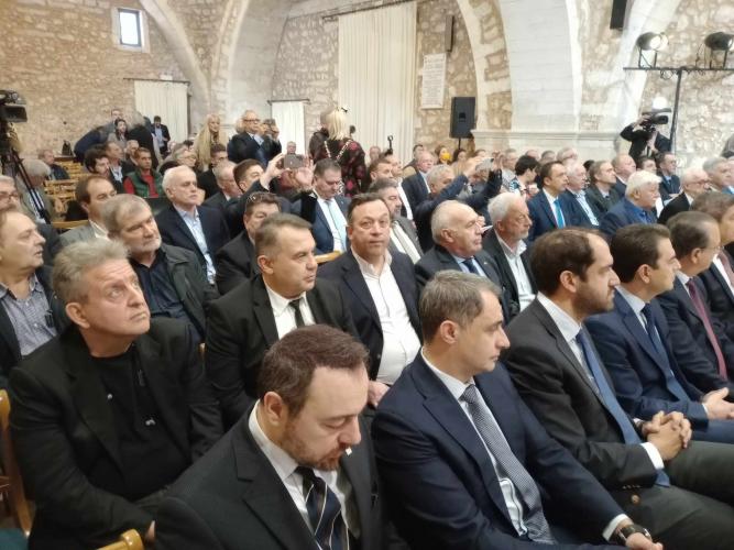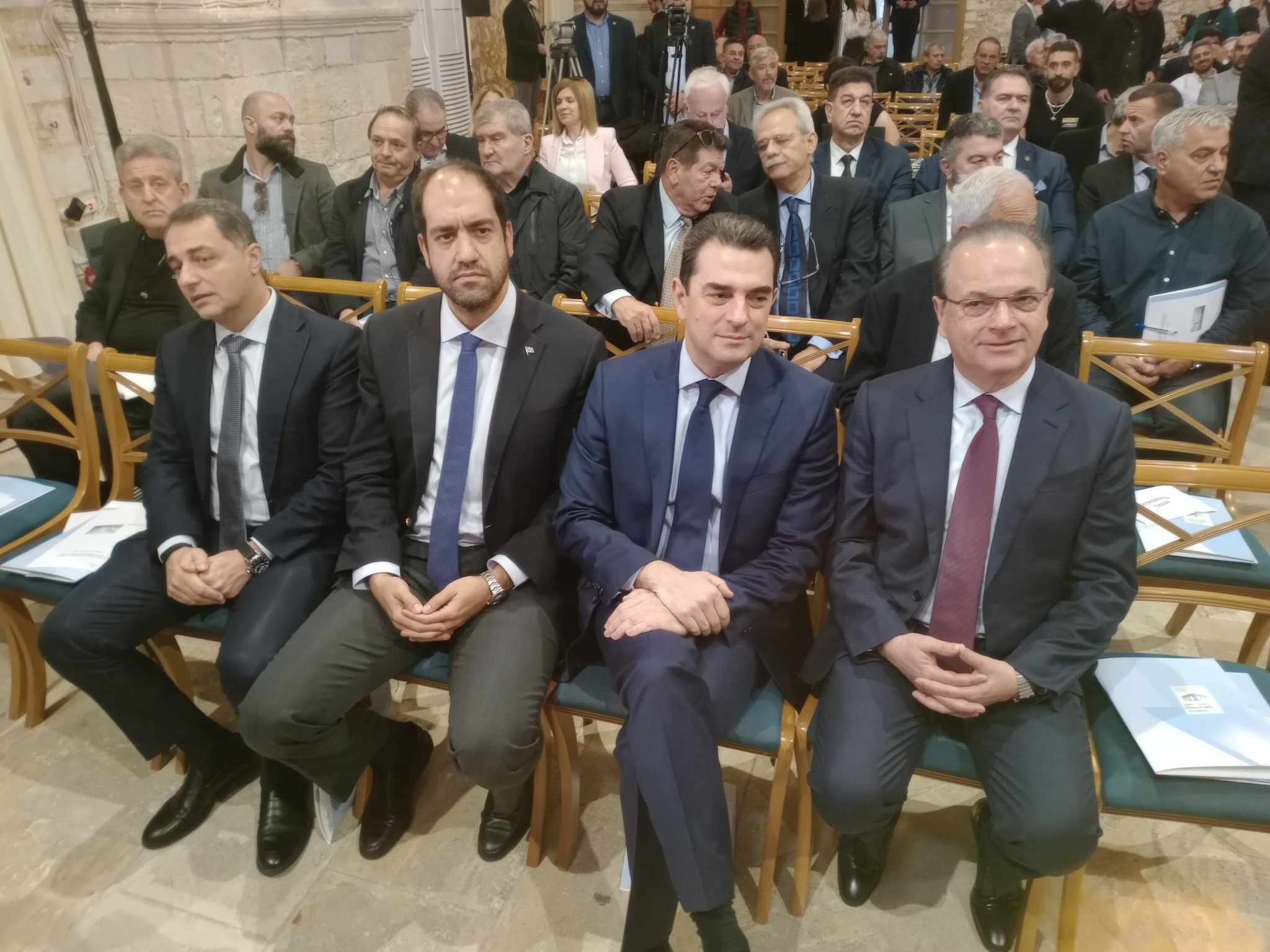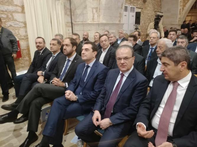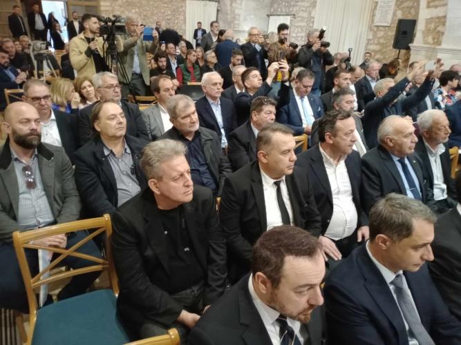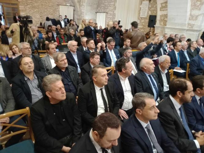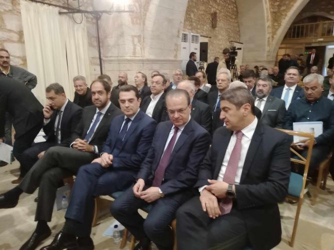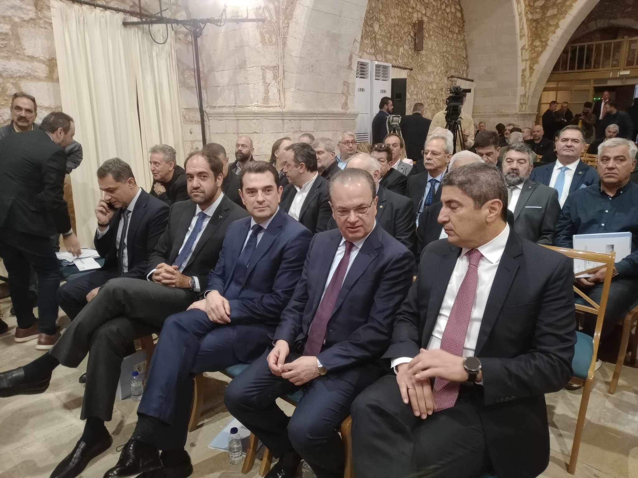 Στο Ωδείο της παλιάς πόλης, όπου διεξάγονται οι εργασίες της συνεδρίασης παρευρίσκονται ο Υπουργός Ανάπτυξης κ. Κωνσταντίνος Σκρέκας, εκπροσωπώντας την κυβέρνηση, ο Υπουργός Αγροτικής Ανάπτυξης και Τροφίμων κ. Λευτέρης Αυγενάκης, ο Υπουργός Ναυτιλίας και νησιωτικής πολιτικής κ. Χρήστος Στυλιανίδης, ο Υφυπουργός Εθνικής Άμυνας και Βουλευτής Ρεθύμνου κ. Ιωάννης Κεφαλογιάννης, ο Υφυπουργός Ανάπτυξης κ. Μάξιμος Σενετάκης καθώς επίσης Γενικοί Γραμματείς Υπουργείων και Κυβερνητικά στελέχη.