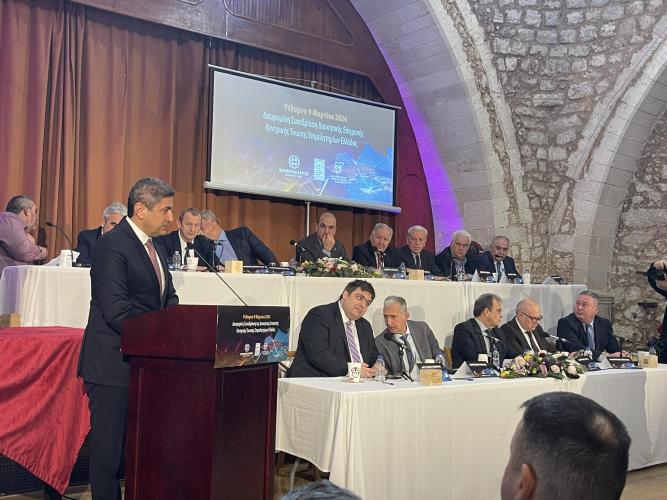 Δεν παρέλειψε, ωστόσο, να δώσει έμφαση και στα ζητήματα της Βιομηχανικής Παραγωγής στον Τομέα της Ενέργειας παρουσιάζοντας το «ελληνικό παράδοξο», την ίδια στιγμή που στη χώρα και στην Κρήτη λειτουργούν επιχειρήσεις που παράγουν πρωτοποριακά και καινοτόμα προϊόντα, όπως χαλύβδινες σωλήνες, ηλεκτρικά καλώδια, μπαταρίες, προϊόντα αλουμινίου, θερμοσίφωνες και εμείς να εισάγουμε τα πάντα από την Κίνα και τις ΗΠΑ. «Η πράσινη και δίκαιη μετάβαση, είναι ένα πεδίο πολιτικής, που μπορεί να εμπνεύσει, να συνενώσει δυνάμεις και να δώσει μια νέα ώθηση στους επιχειρηματίες της χώρας. Η αξιοποίηση των πόρων του Ταμείου Ανάκαμψης και ο σχεδιασμός έξυπνων πολιτικών για την ενέργεια, μπορούν να συμβάλλουν σημαντικό στη στήριξη των επιχειρήσεων της Κρήτης και της χώρας».