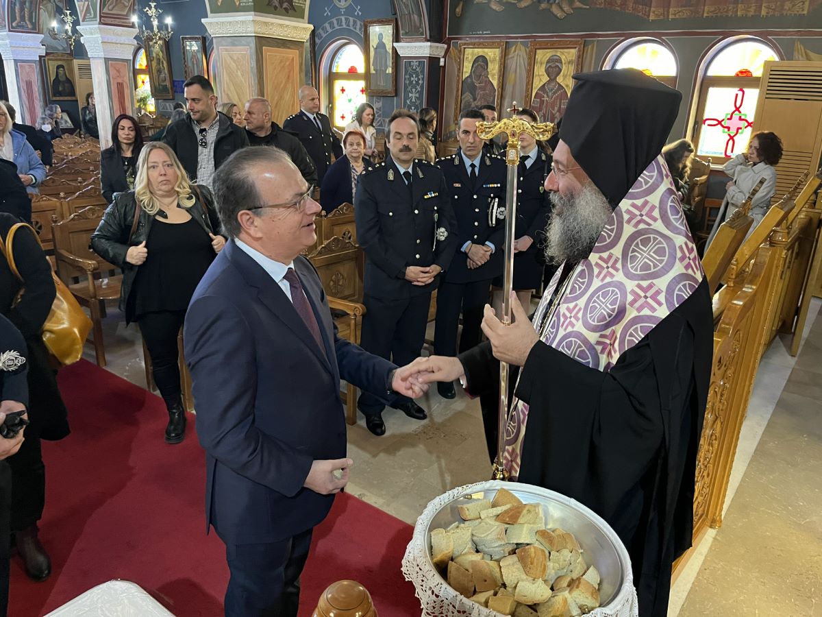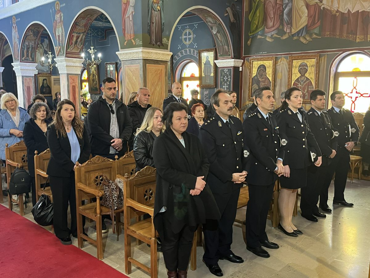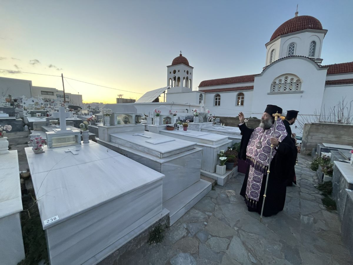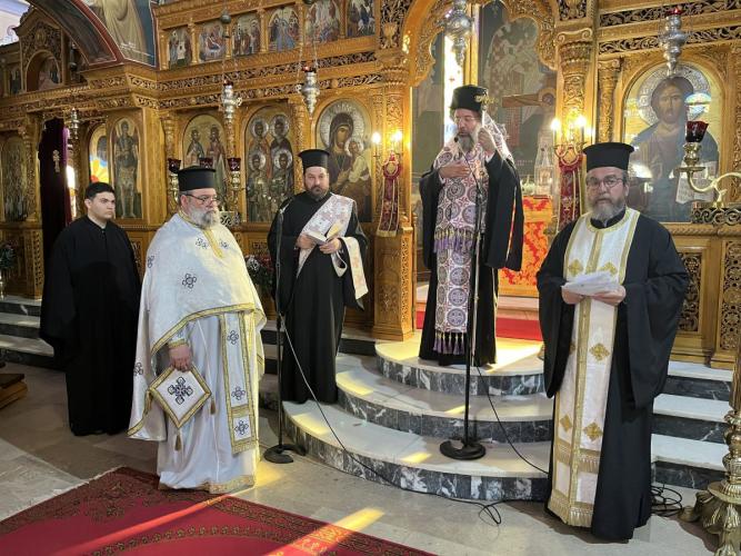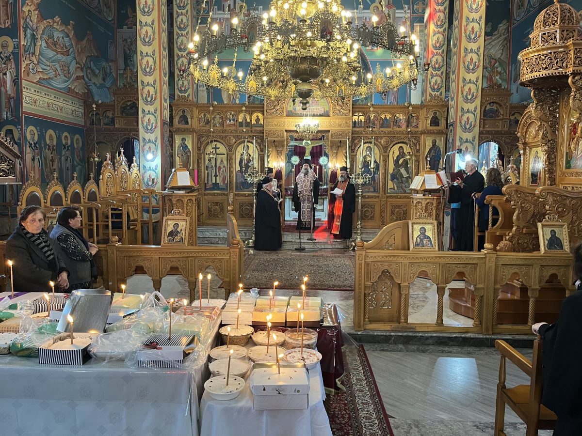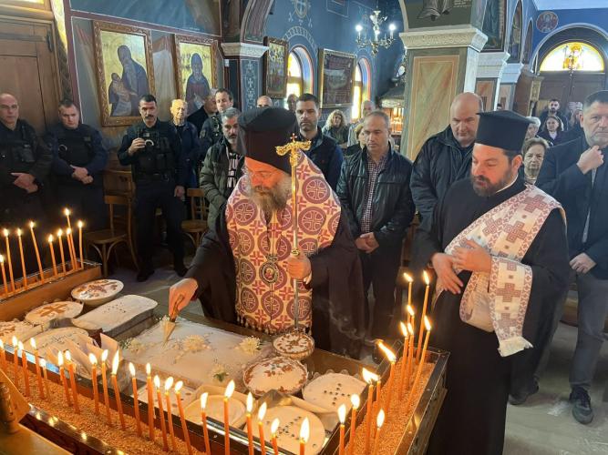 Στο τέλος της Θείας Λειτουργίας, ο Επίσκοπός μας ανέγνωσε Ιερό Τρισάγιο επί των προσκομισθέντων κολλύβων για την ανάπαυση απάντων των κεκοιμημένων αδελφών μας, ιδίως δε των πεσόντων κατά την ώρα του καθήκοντος αστυνομικών, και ομίλησε κατάλληλα για τη σπουδαιότητα των Ιερών Μνημοσύνων.