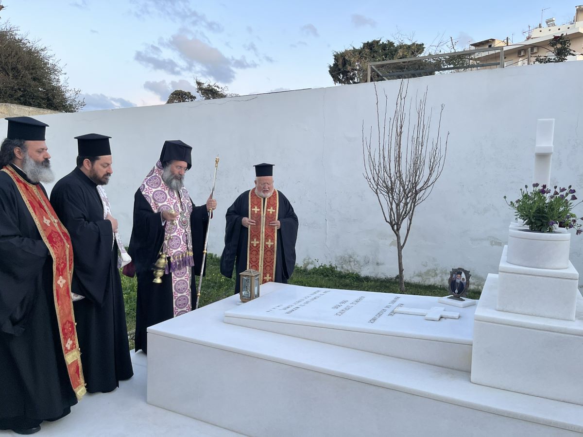 Ακολούθως, ο Επίσκοπός μας ανέγνωσε Τρισάγιο επί του τάφου του μακαριστού Μητροπολίτου Ρεθύμνης και Αυλοποτάμου κυρού Ανθίμου, κατά το οποίο μνημόνευσε όλους τους αοιδίμους Αρχιερείς της εν Ρεθύμνη και Αυλοποτάμω παροικούσης Εκκλησίας. Επίσης, στο παρακείμενο Κοιμητήριο του Ιερού Ναού, ο Σεβασμιώτατος ανέγνωσε Τρισάγιο υπέρ αναπαύσεως πάντων των κεκοιμημένων αδελφών μας καθώς και του μακαριστού Γεωργίου Τσικόγια, μεγάλου ευεργέτου της Τοπικής μας Εκκλησίας.