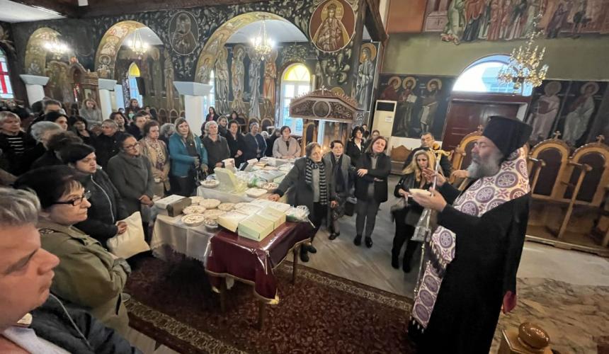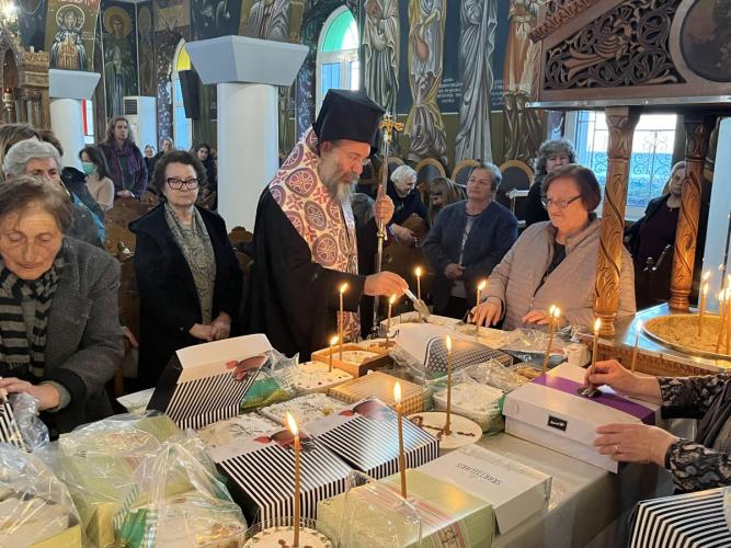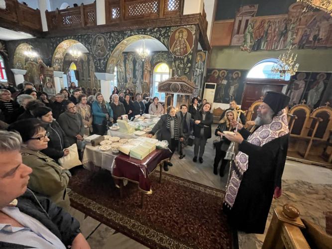 Προ της απολύσεως του Εσπερινού, ο Σεβασμιώτατος, συμπαραστατούμενος υπό των Εφημερίων της Ενορίας και του Αρχιδιακόνου αυτού, ανέγνωσε Ιερό Τρισάγιο επί των προσφερθέντων κολλύβων για την ανάπαυση των κεκοιμημένων αδελφών μας.