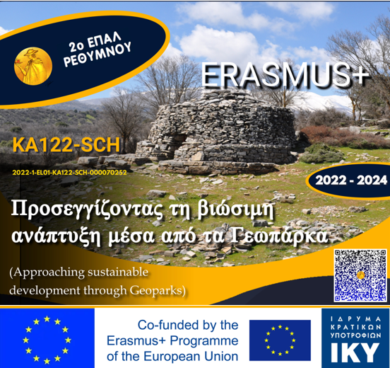 Ολοκληρώθηκε με επιτυχία η ημερίδα που διοργάνωσε το 2ο Επαγγελματικό Λύκειο Ρεθύμνου με θέμα “Διάχυση αποτελεσμάτων του Ευρωπαϊκού Προγράμματος Erasmus+” με τίτλο “Προσεγγίζοντας τη βιώσιμη ανάπτυξη μέσα από τα Γεωπάρκα” και κωδικό προγράμματος 2022-1-EL01-KA122-SCH-000070252, η οποία πραγματοποιήθηκε την Τρίτη 27 Φεβρουαρίου 2024 στην αίθουσα “Σπίτι Πολιτισμού” και αποτέλεσε δράση προβολής και δημοσιότητας του έργου, το οποίο συγχρηματοδοτείται από το πρόγραμμα Erasmus+ της Ευρωπαϊκής Ένωσης. Οι συμμετέχοντες αφιέρωσαν την εκδήλωση στη μνήμη των 57 θυμάτων του τραγικού δυστυχήματος των Τεμπών που έγινε στις 28 Φεβρουαρίου 2023.