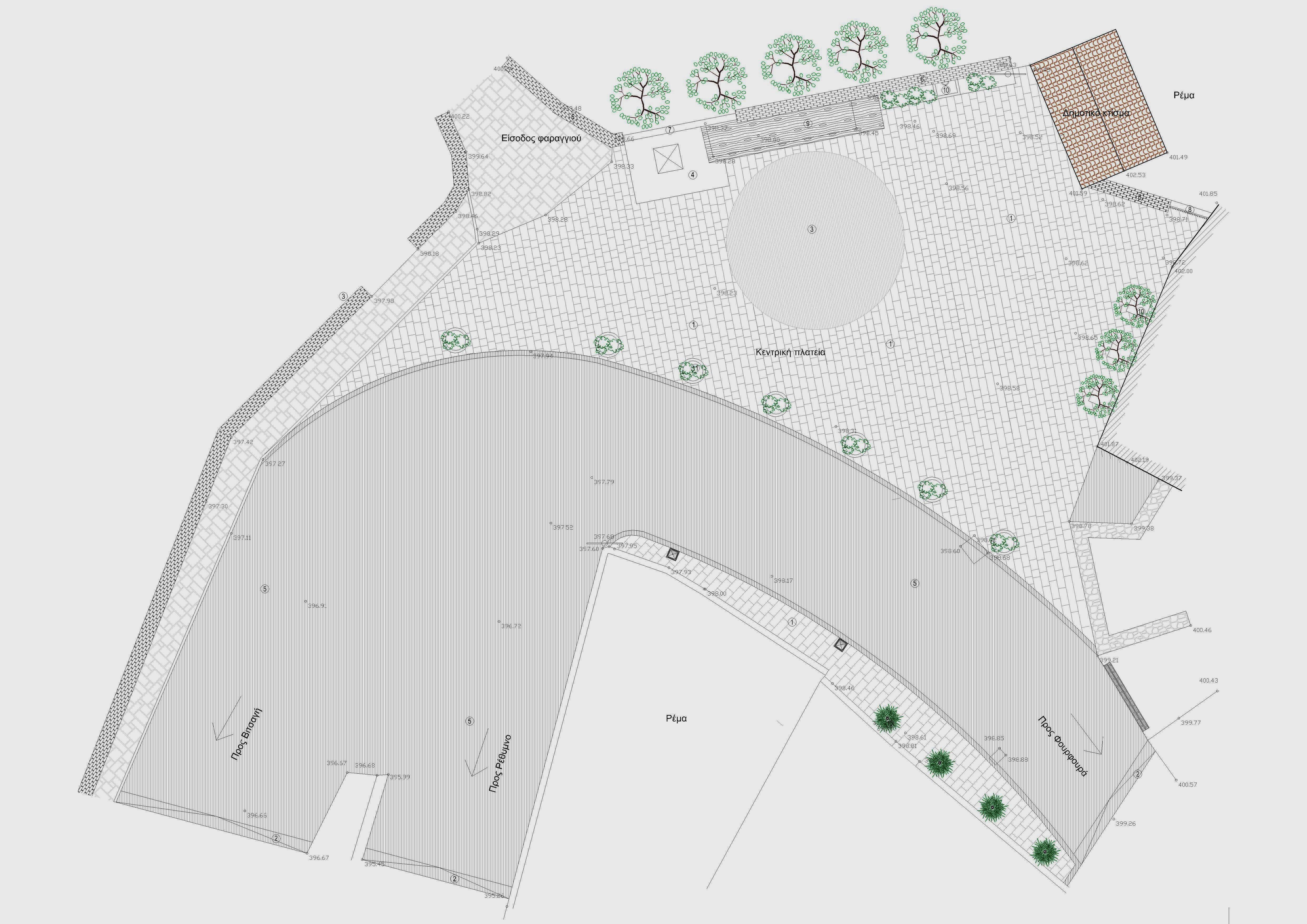 Στη μελέτη του έργου ενσωματώνονται, μεταξύ άλλων, εργασίες καθαίρεσης του υφιστάμενου ασφαλτικού υλικού για τη διαμόρφωση κατάλληλων κλίσεων, η πλακόστρωση της πλατείας, εργασίες οριοθέτησης της κεντρικής οδού με την κατασκευή βιομηχανικού δαπέδου, η κατασκευή νέων και η επέκταση υφιστάμενων λιθοδομών, καθώς και η τοποθέτηση νέων φωτιστικών σωμάτων.