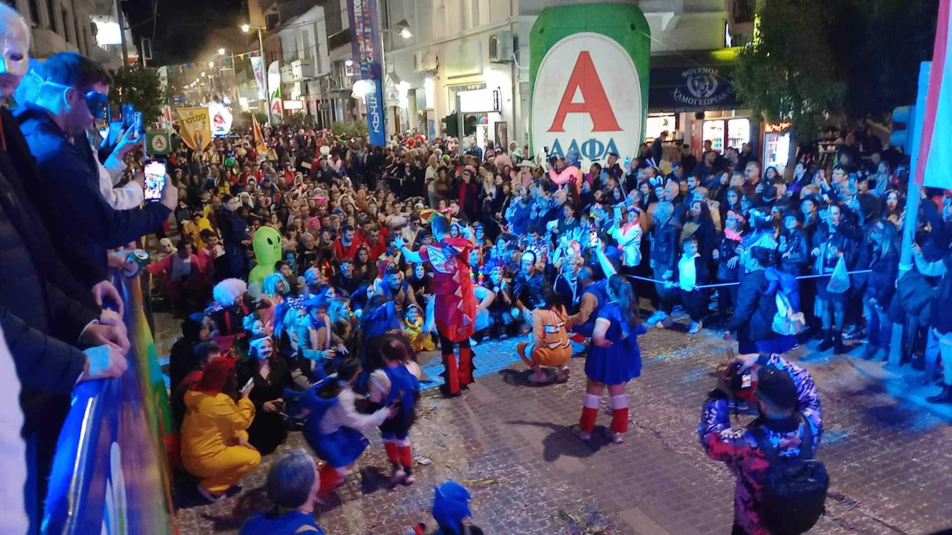 Χιλιάδες κόσμου ξεχύθηκαν με κέφι και πλημμύρησαν την κεντρική λεωφόρο Κουντουριώτη με πολύχρωμες στολές, μουσική, τραγούδι και χορό!