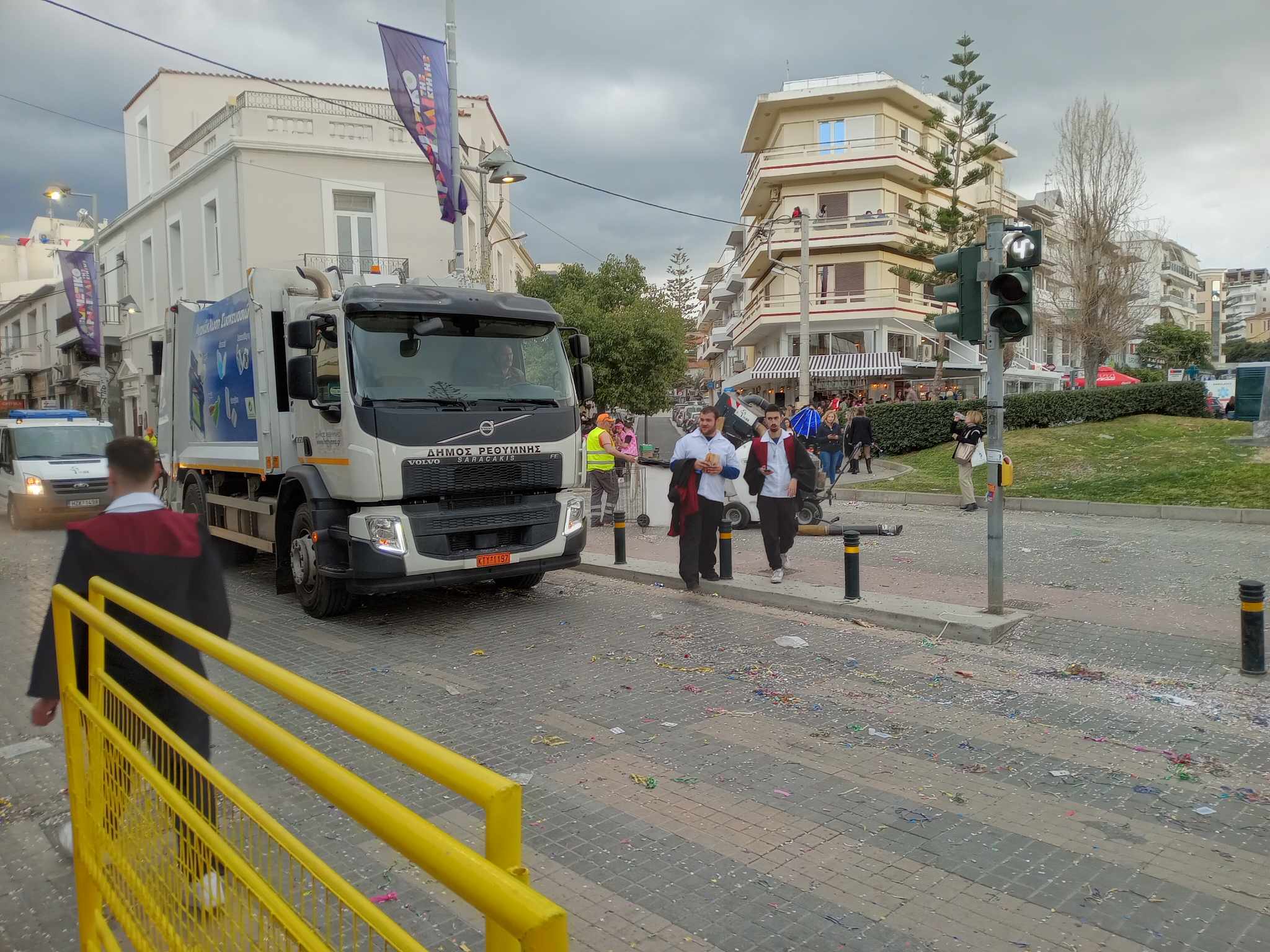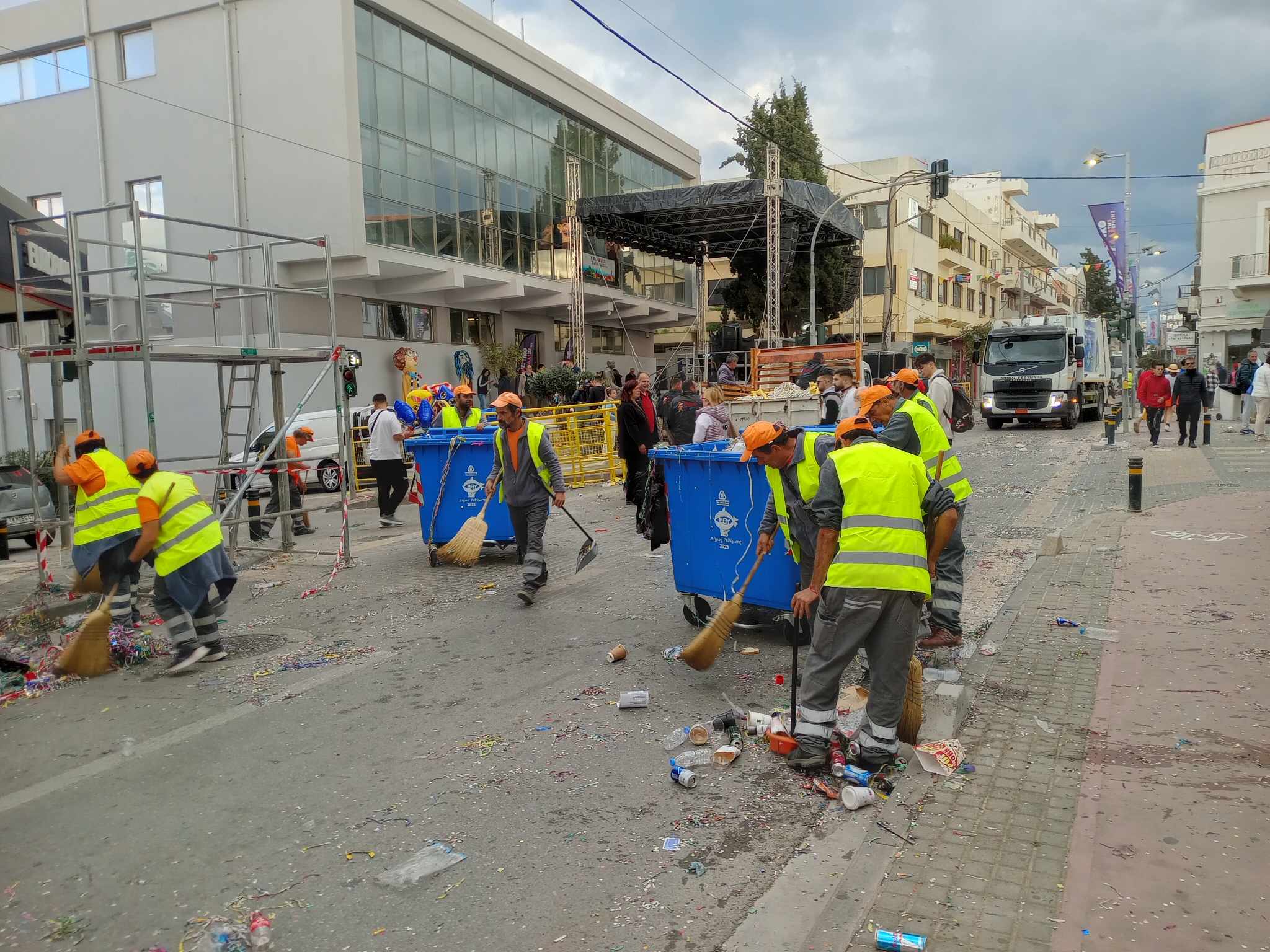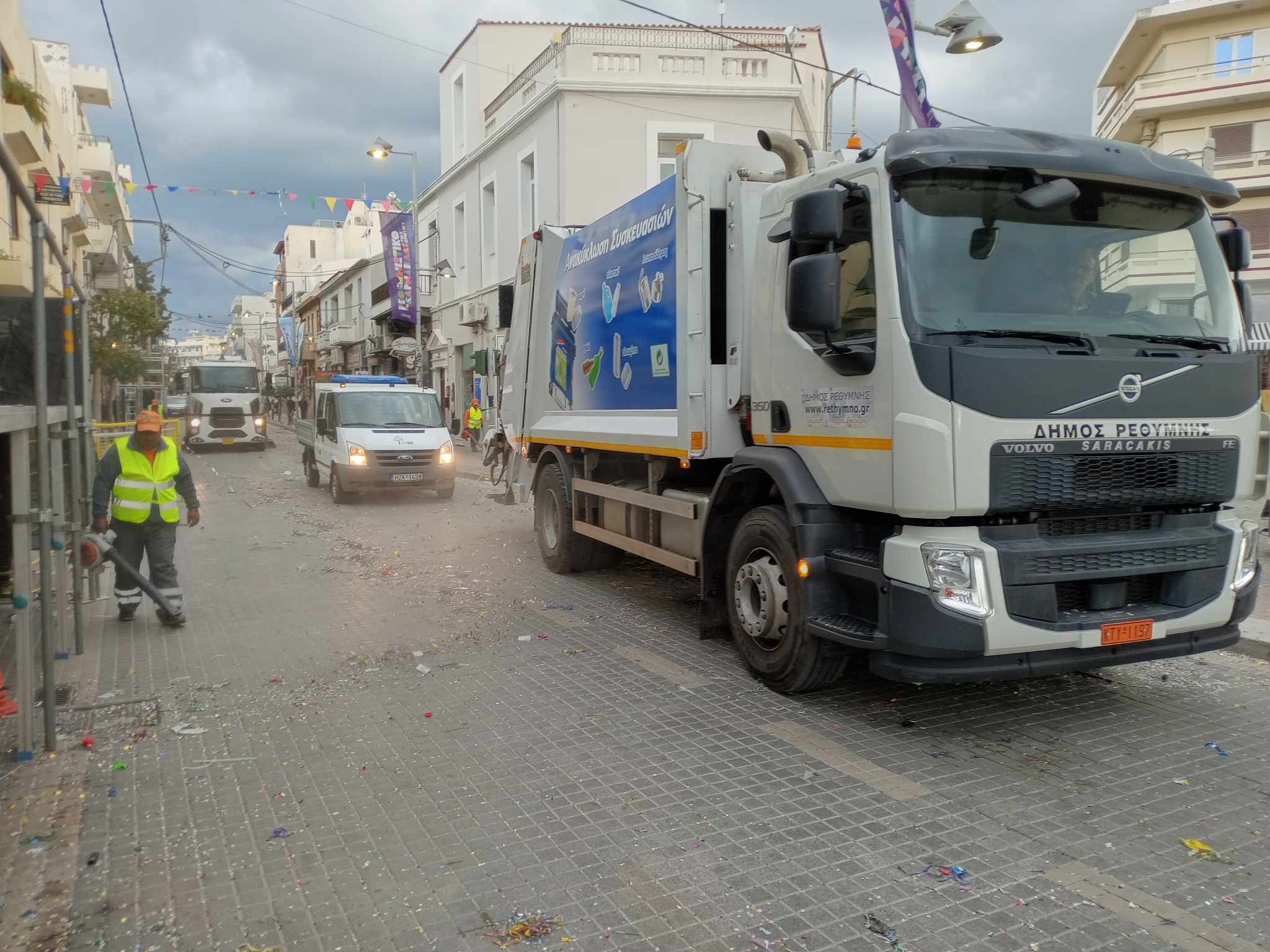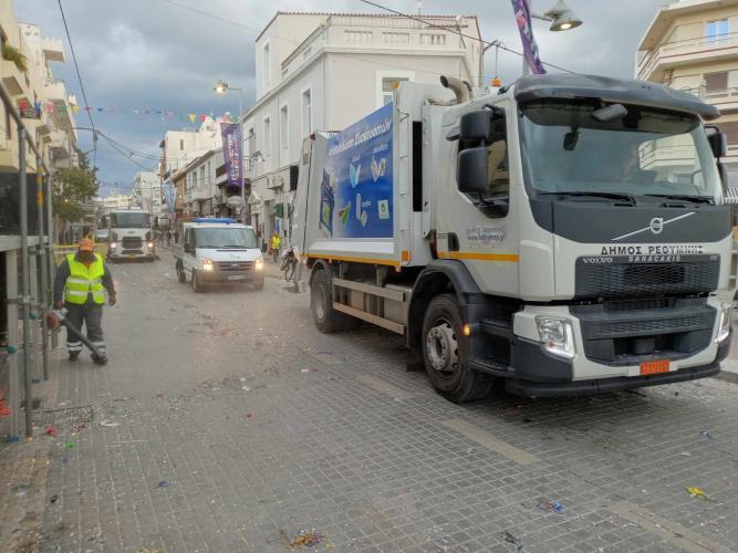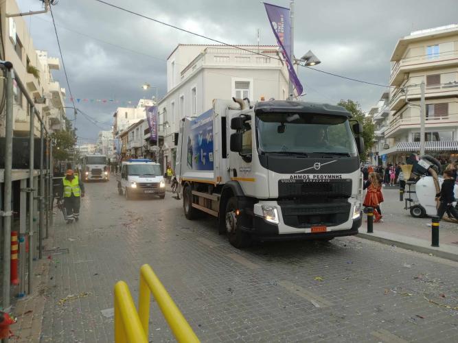 Με την ολοκλήρωση της καρναβαλικής παρέλασης η υπηρεσία καθαριότητας του Δήμου Ρεθύμνου με τα συνεργεία της ακολουθούσαν το τελευταίο άρμα και καθάριζαν την πόλη του Ρεθύμνου που δέχθηκε χιλιάδες καρναβαλιστές και χιλιάδες επισκέπτες που ήρθαν με αφορμή το Ρεθεμνιώτικο Καρναβάλι!
