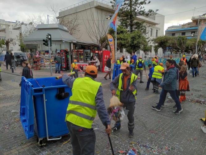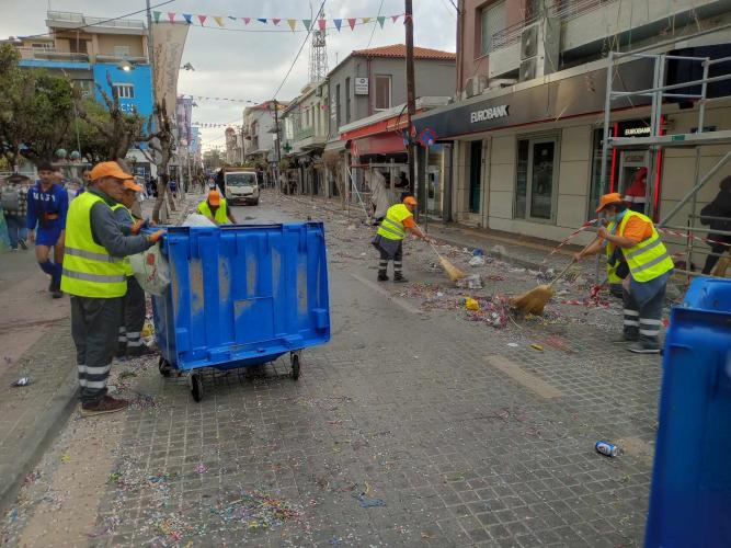 Αξίζουν πολλά συγχαρητήρια στους ανθρώπους των υπηρεσιών καθαριότητας για την άμεση παρέμβαση τους αλλά και σε όλους τους ανθρώπους που βρίσκονται πίσω από την μεγάλη γιορτή της πόλης και φροντίζουν την άμεση αποκατάσταση της κυκλοφορίας και της ομαλής λειτουργίας της πόλης μετά την ολοκλήρωση της καρναβαλικής παρέλασης.