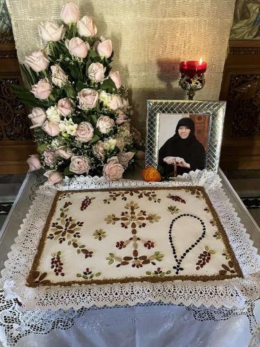 Κατά τη Θεία Λειτουργία τελέσθηκε το Διετές Ιερό Μνημόσυνο της μακαριστής Γεροντίσσης Πανσέμνης, κτητορίσσης και πρώτης Καθηγουμένης της Ιεράς Μονής Κουμπέ.