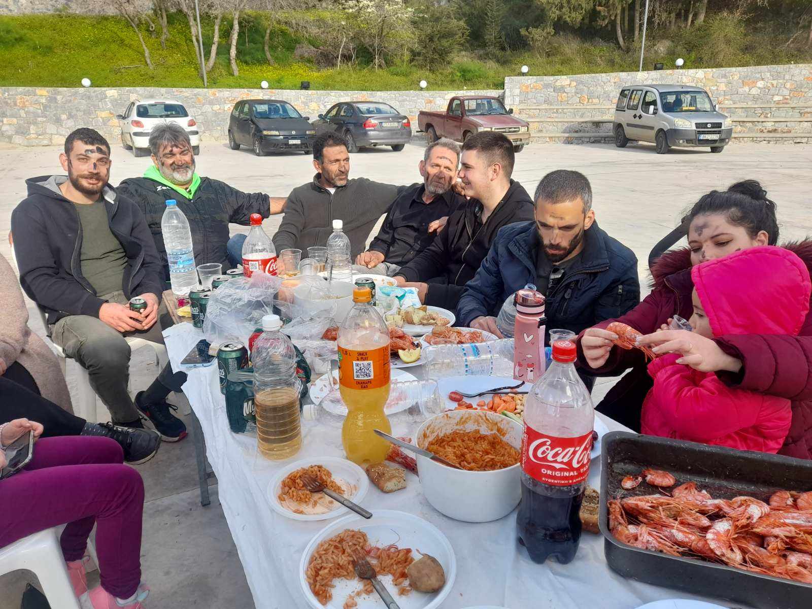 Νηστίσιμοι μεζέδες, η παραδοσιακή φασολάδα καλό κρασί και όλοι... μουτζουρωμένοι, όπως απαιτεί το έθιμο της ημέρας!