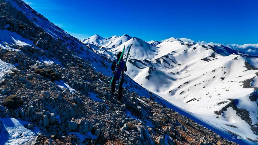 Περνώντας από εναλλασσόμενα εδάφη (μαλακό χιόνι, σκληρό χιόνι, πάγος κ.α.) οι σκιέρ ανέβηκαν στη κορυφή της Κρήτης με θέα που μαγεύει!