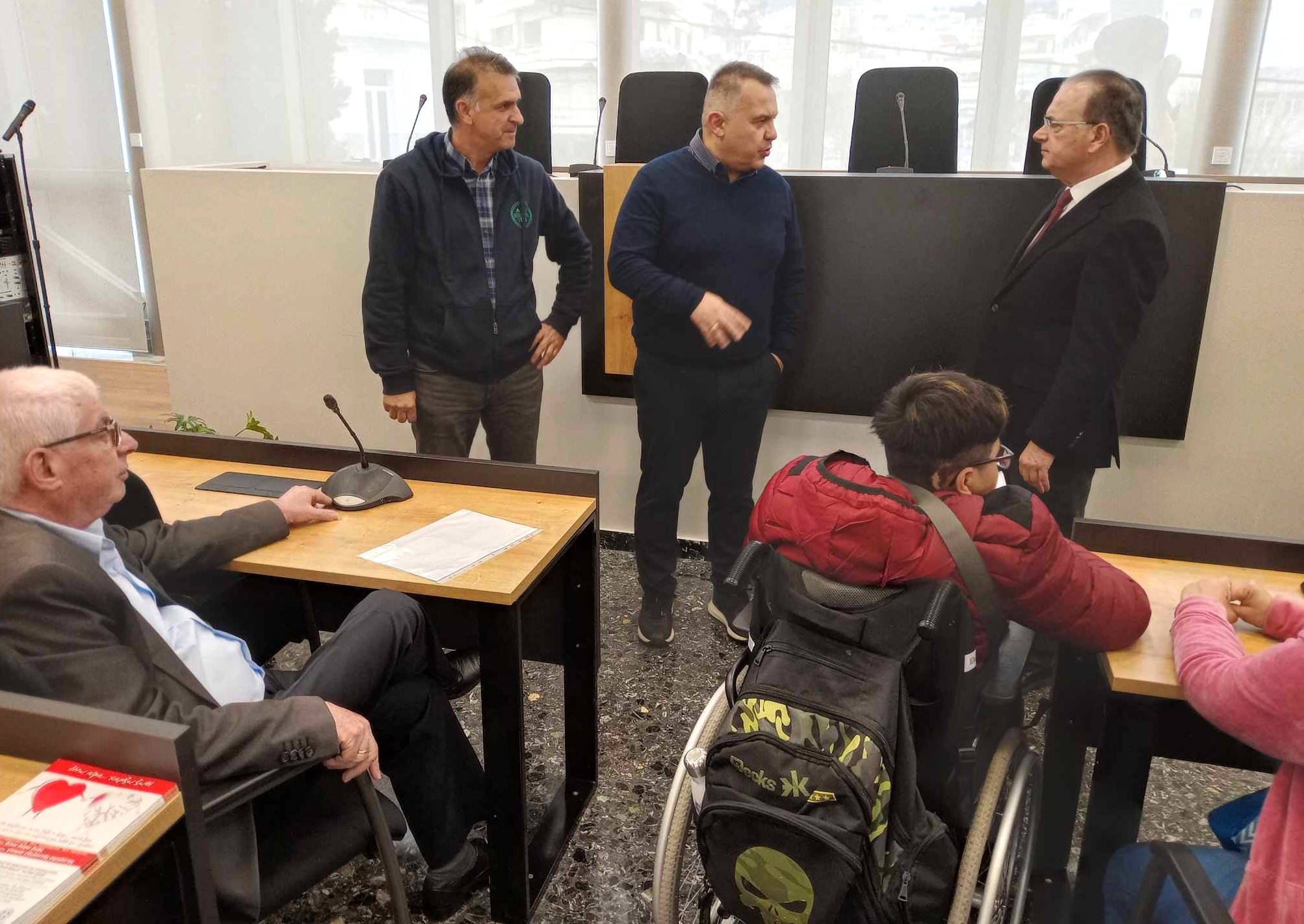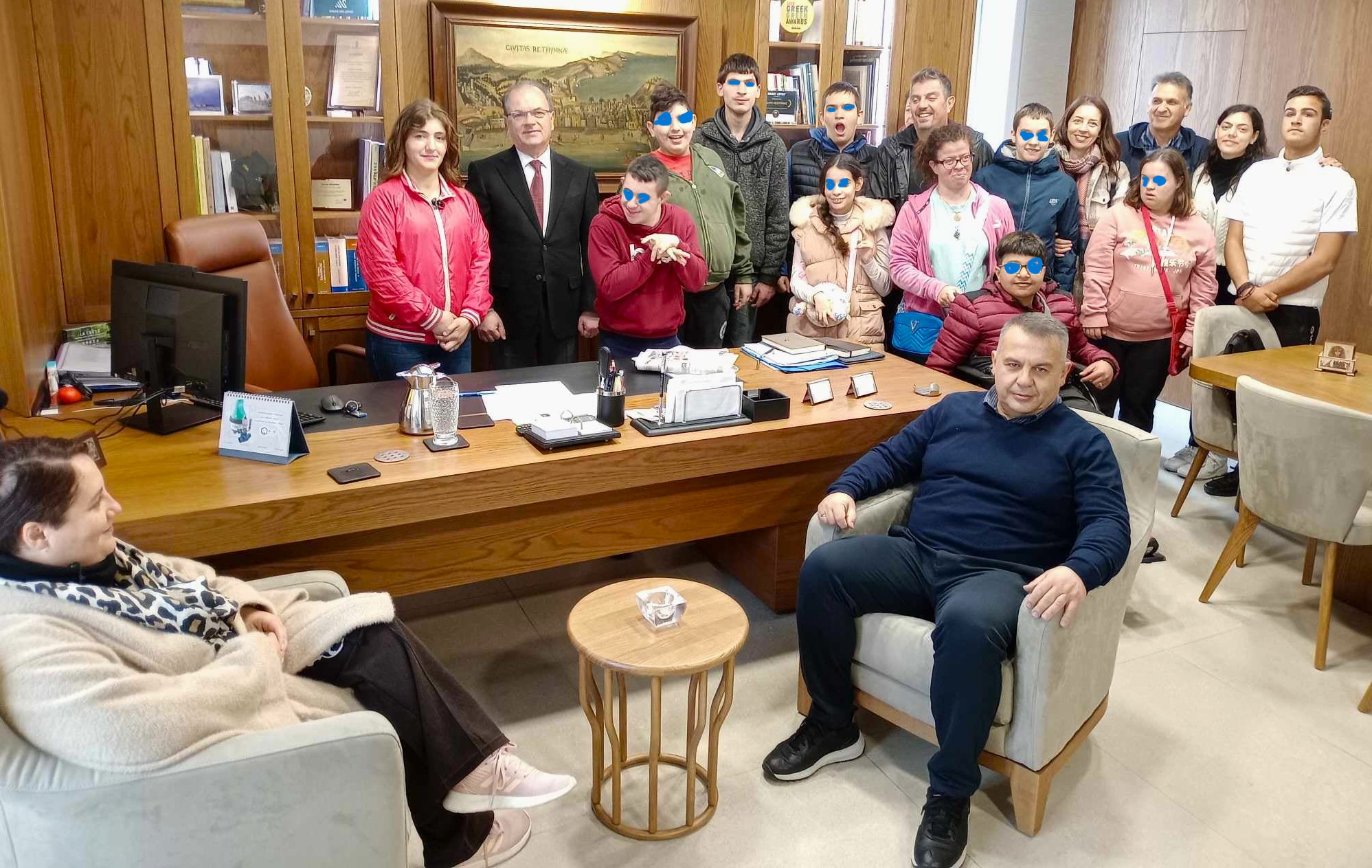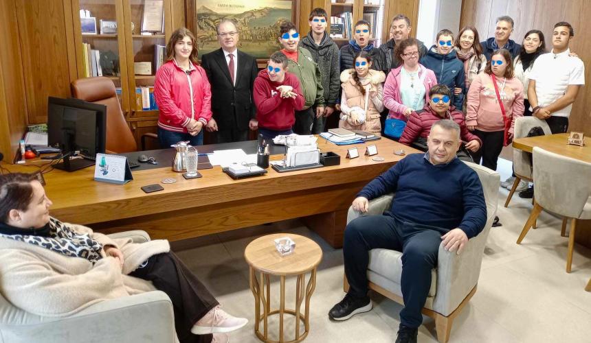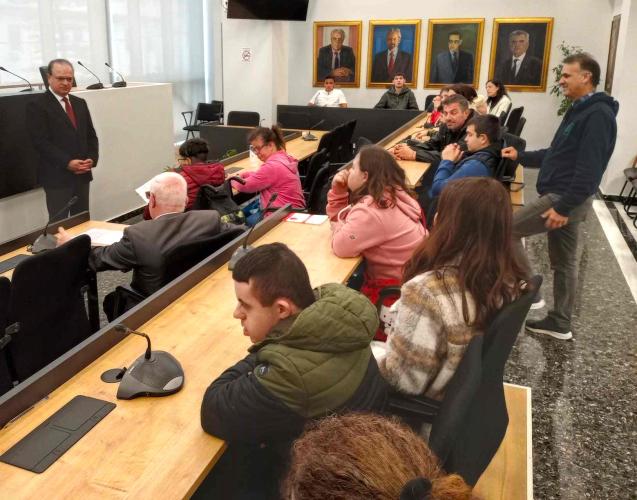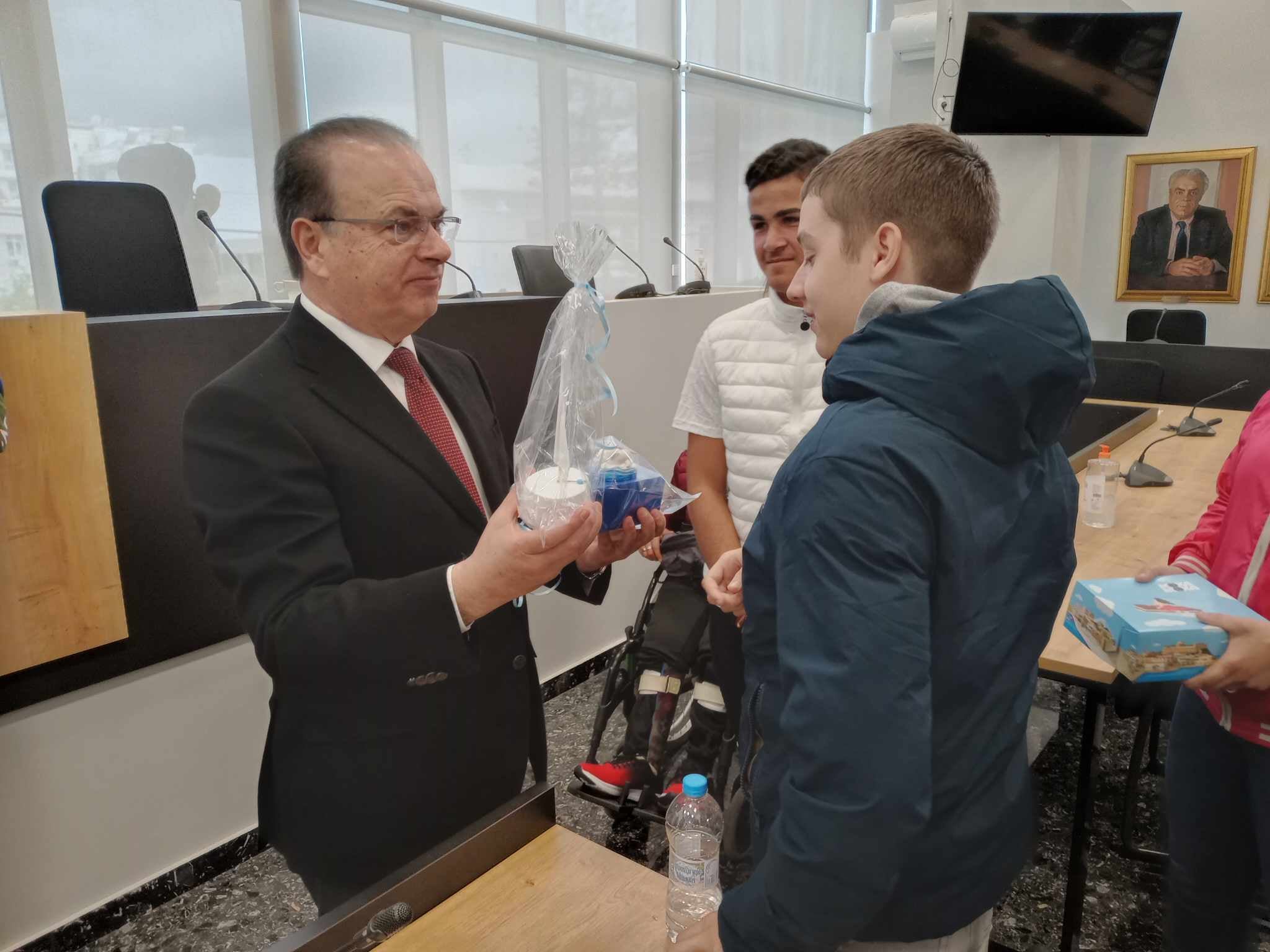 Ο Δήμαρχος Ρεθύμνης κ. Γιώργης Χ. Μαρινάκης είχε την χαρά να δεχθεί στο Δημαρχείο το πρωί της Τετάρτης 20 Μαρτίου 2024 την επίσκεψη 20 μαθητών του Ε.Ε.Ε.Ε.Κ. Ρεθύμνου. Τους μαθητές συνόδευε ο Υποδιευθυντής του σχολείου κ. Χάρης Χαρωνίτης μαζί με άλλους εκπαιδευτικούς. Παρευρέθηκαν ο Αντιδήμαρχος Παιδείας του Δήμου Ρεθύμνης κ. Νεκτάριος Παπαδογιάννης και ο Πρόεδρος τους Σωματείου ΑμεΑ Ν. Ρεθύμνου κ. Δημήτριος Τσαχάκης.