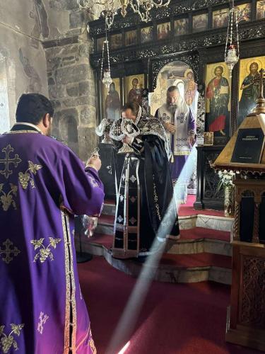 Το πρωί της Καθαράς Τετάρτης, 20ής Μαρτίου 2024, ο Σεβασμιώτατος Μητροπολίτης Ρεθύμνης και Αυλοποτάμου κ. Πρόδρομος μετέβη στο Καθολικό της Ιεράς Μονής Μυριοκεφάλων, όπου τέλεσε την πρώτη Θεία Λειτουργία των Προηγιασμένων Δώρων, συμπαραστατούμενος από τον Εφημέριο της Ενορίας Μυριοκεφάλων, Αιδεσιμολ. Πρωτοπρεσβύτερο Θεόδωρο Σηφάκη, και τον Ιερολ. Αρχιδιάκονο Κωνσταντίνο Ζουμπεράκη.