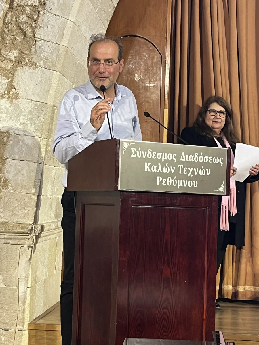 Ο ελλογιμ. κ. Μανούσος Μαραγκάκης, Διευθυντής Δευτεροβάθμιας Εκπαίδευσης Ρεθύμνου, χαιρέτισε με ιδιαίτερη χαρά και ενθουσιασμό την εκδήλωση αυτή. Τις ευχές του για την επετειακή αυτή χρονιά και για το πλήθος των εκδηλώσεων που θα λάβουν χώρα εξέφρασε ο Αντιδήμαρχος Πολιτισμού του Δήμου Ρεθύμνης κ. Μάνος Τσάκωνας.