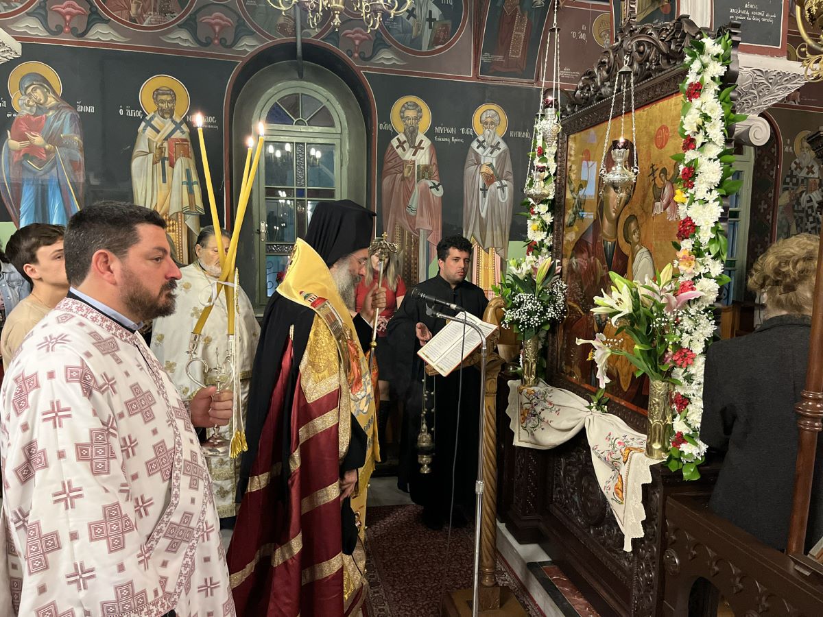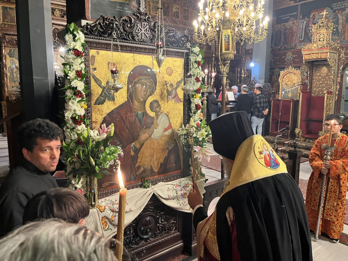 Ο Σεβασμιώτατος, και στις δύο Ακολουθίες, αναφέρθηκε στον κομβικό ρόλο της Υπεραγίας Θεοτόκου στο σχέδιο της Θείας Οικονομίας για τη σωτηρία του ανθρώπου και στην οικειότητα, την οποία όλοι μας αισθανόμαστε πάντοτε απευθυνόμενοι στη Μεγάλη Μάνα μας, την Παναγία, και ευχήθηκε καλό το υπόλοιπο της Αγίας και Μεγάλης Τεσσαρακοστής.