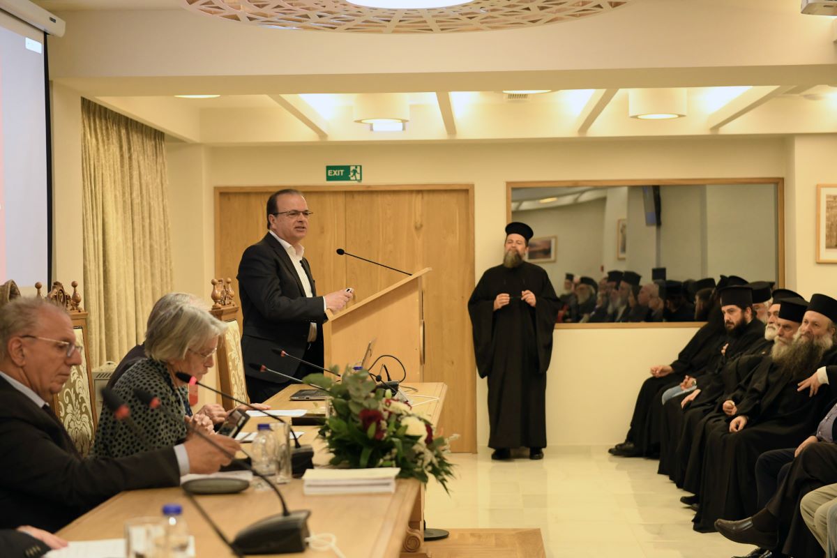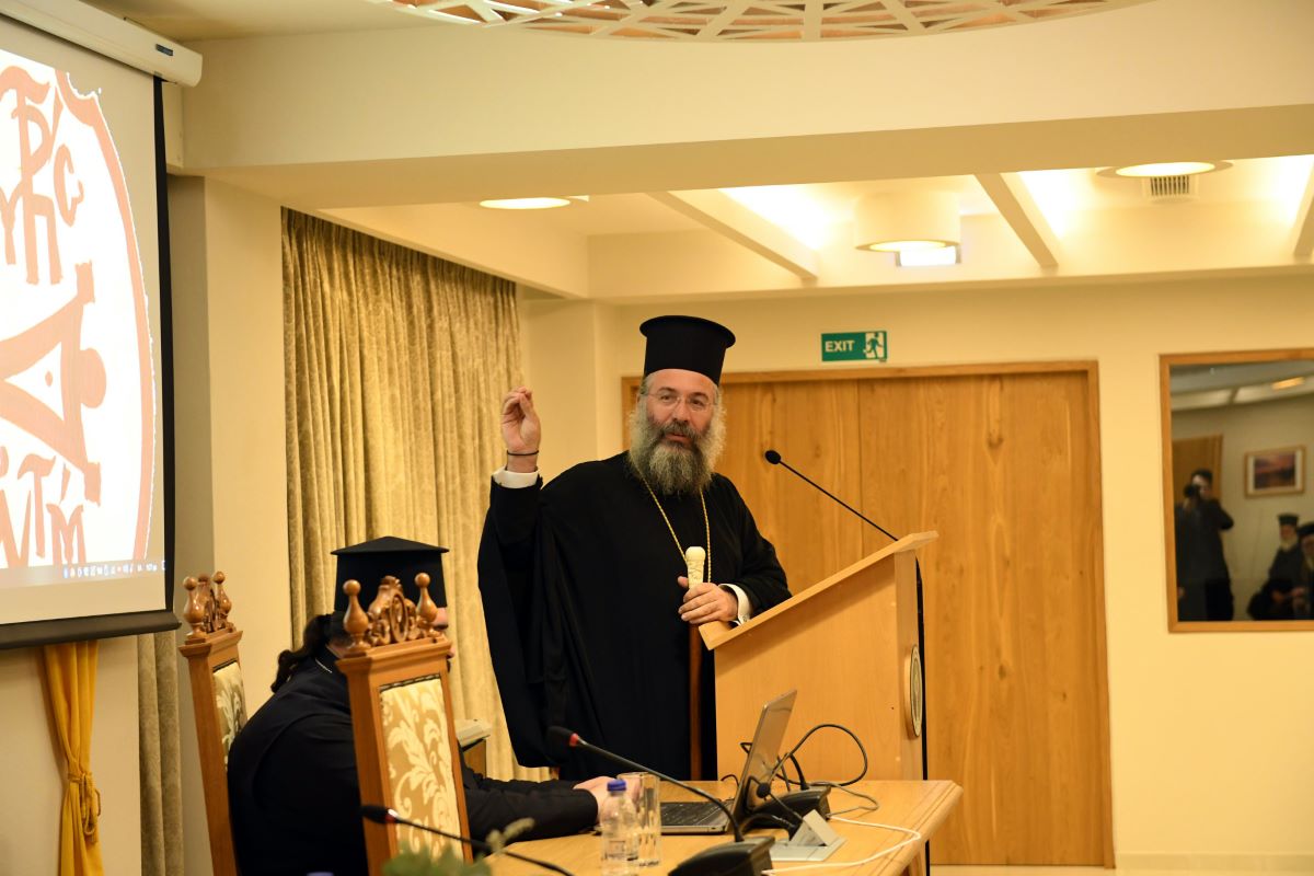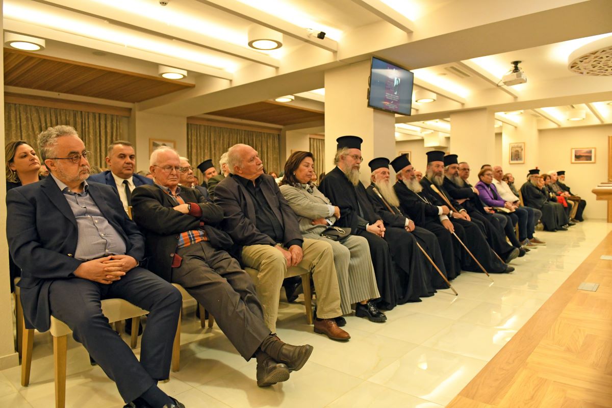 Χαιρετισμό κατά την έναρξη της εκδηλώσεως απηύθυναν ο Σεβασμιώτατος Αρχιεπίσκοπος Κρήτης κ. Ευγένιος, οι εντιμότατοι κ. Μαίρη Λιονή, Αντιπεριφερειάρχης Ρεθύμνης, και κ. Γεώργιος Μαρινάκης, Δήμαρχος Ρεθύμνης, καθώς και ο ελλογιμ. κ. Εμμανουήλ Δουνδουλάκης, εκ μέρους του Προέδρου, Δρος Μιχαήλ Στρουμπάκη, και των Μελών του Ακαδημαϊκού Συμβουλίου της Πατριαρχικής Ανωτάτης Εκκλησιαστικής Ακαδημίας Κρήτης. Επίσης, αναγνώσθηκε θερμός και εμπνευσμένος Χαιρετισμός του Σεβασμιωτάτου Αρχιεπισκόπου Αυστραλίας κ. Μακαρίου.
