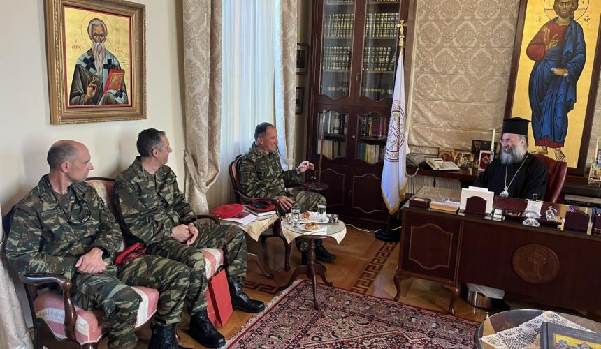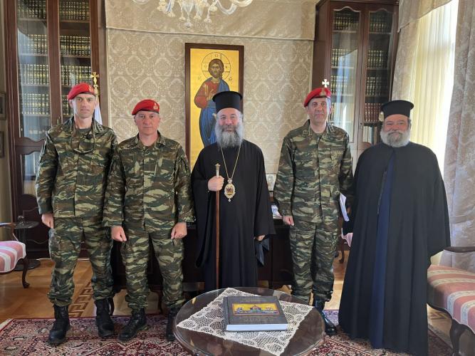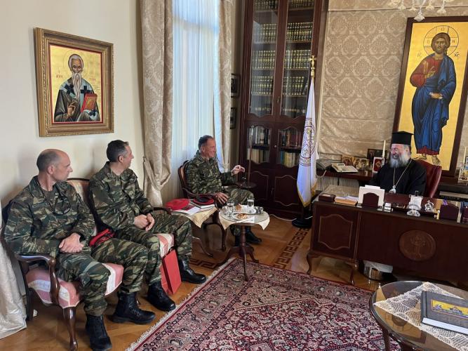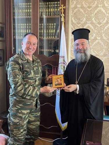 Ο Σεβασμιώτατος διαβεβαίωσε ότι η Τοπική μας Εκκλησία και ο Επίσκοπός της θα συνεχίσουν την αγαστή συνεργασία με τον Φιλόχριστο Ελληνικό Στρατό, προκειμένου όλοι μαζί να υπηρετήσομε την ενότητα και την διατήρηση και προβολή αρχών και αξιών σε τούτους τους καιρούς, που αυτά τα πρότυπα προβάλλονται ως απολύτως απαραίτητα στη ζωή των ανθρώπων.